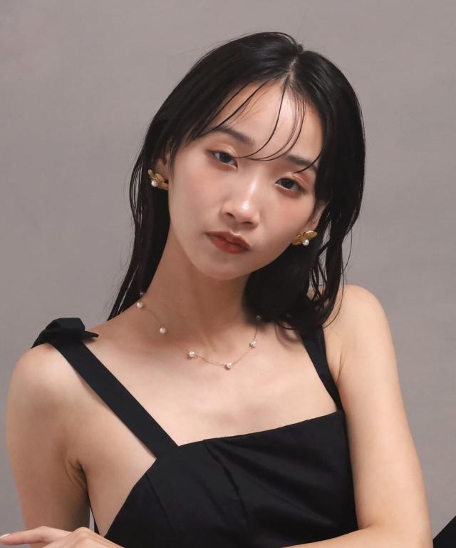 ●上品なパールが顔まわりの印象を華やかにしてくれます。