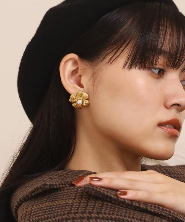 ●アンティーク感のある大ぶりなフラワーピアス。
