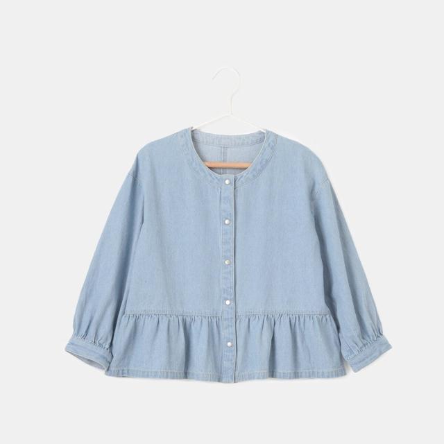 ・裾をフリルで切り替えた、ペプラムシルエットのデニムブルゾン。