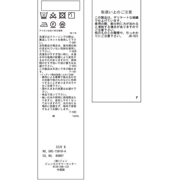 ■お手入:洗濯機|漂白不可|タンブル乾燥不可|自然乾燥|アイロン仕上げ可|ドライ可|ウエットクリーニング可