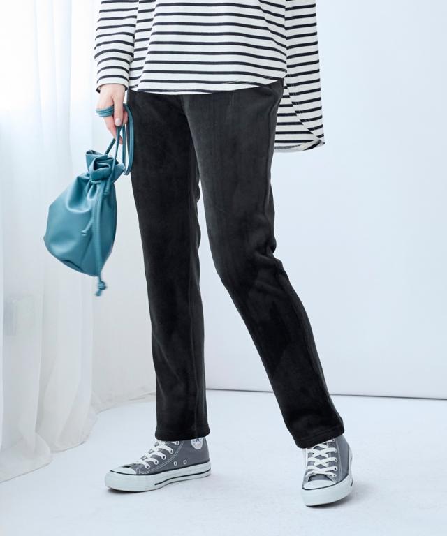 ストレートパンツ レディース 保温 ニット コール裏ベロアボンディング レギンス パンツ 冬 美脚 ボトムス ズボン L/LL/3L/4L/5L