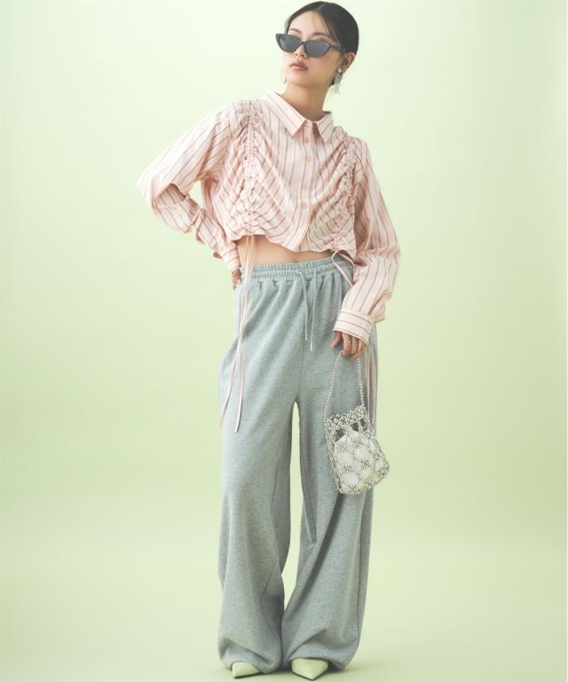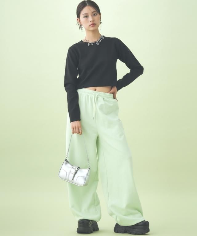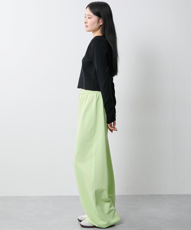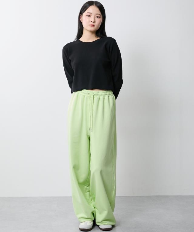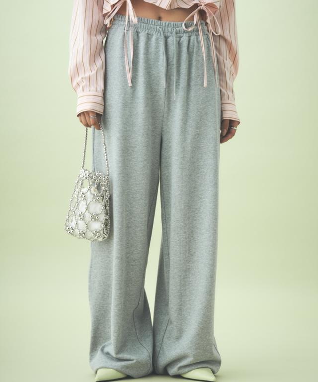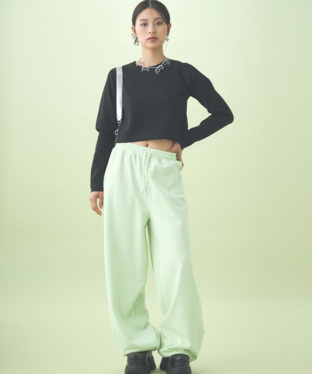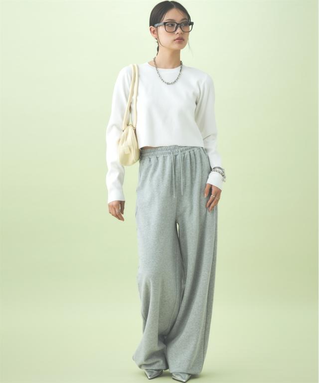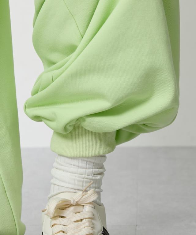 たっぷりとしたルーズシルエットのスエットパンツ。股下長めの仕様で、裾リブ位置を調整して好みのシルエットに調整できます。同素材のパーカとのセットアップもおすすめ。