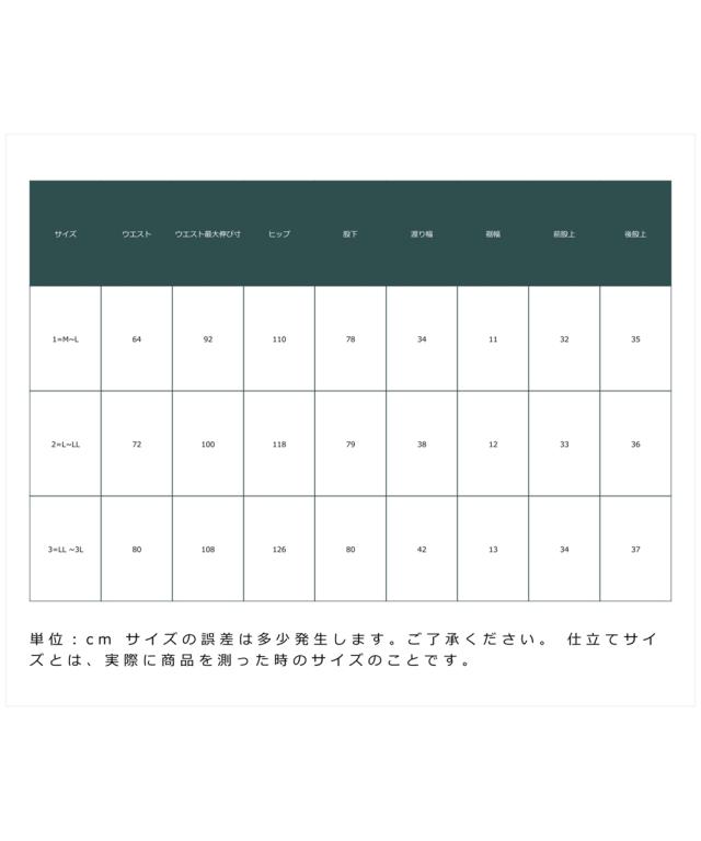 ウエスト:総ゴム・紐入