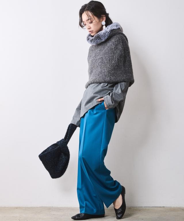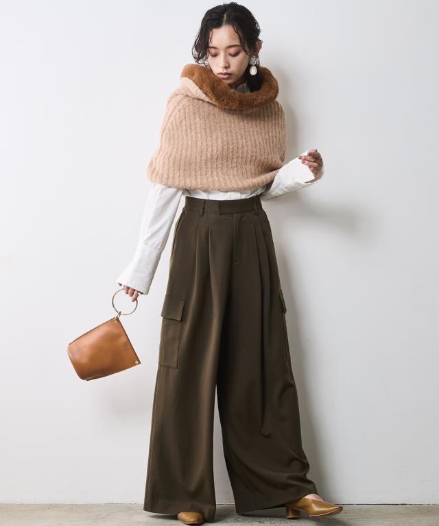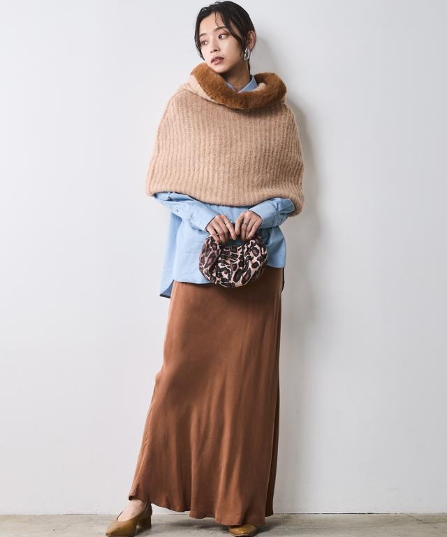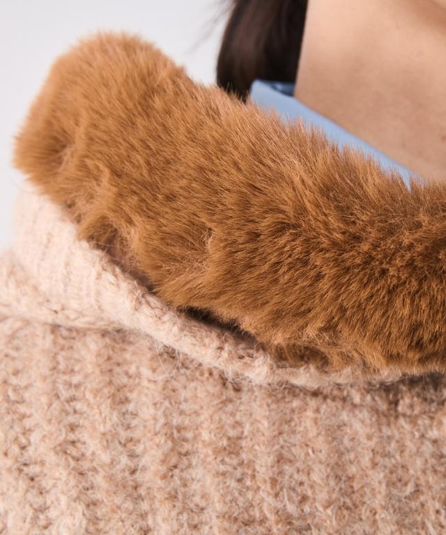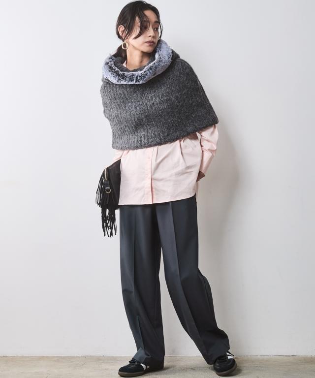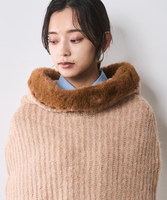 フェイクファー付マントニット シックスタイル(大きいサイズ対応)