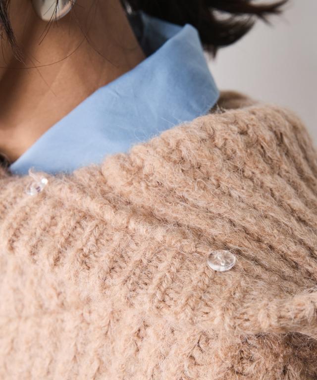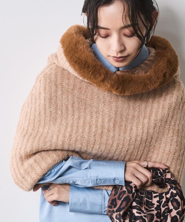 重ねるだけでスタイリングがきまるニットケープ。 ■デザイン いつものトップスの上に羽織るだけでモードな装いに。 カーディガンとはまた違った印象を生み出してくれるマントニット。 取り外し可能のフェイクファーがついたフードデザインで顔回りもこなれた印象に見せるデザインです。 ■素材 肌触りの良く温かみのあるソフトな素材を使用。 ■おすすめのスタイリング 真冬にはアウターの上から、秋には薄手トップスの上からなど、様々アイテムに重ねるだけで雰囲気のあるコーディネイトが完成します。