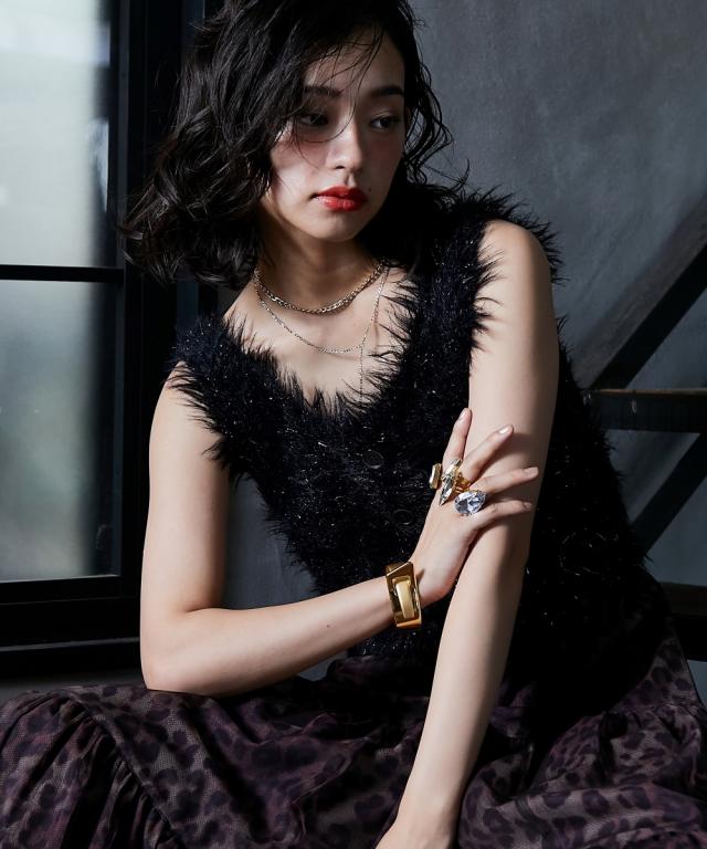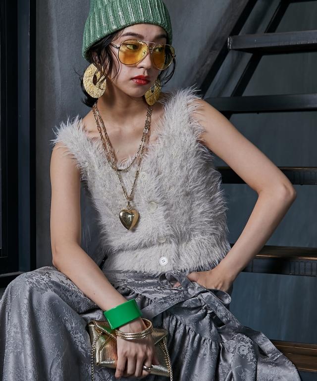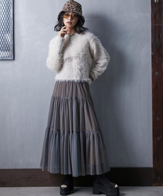 いろんな着方が楽しめる2点セットのシャギーニット。 ■デザイン プラスするだけで着こなしが暖かな印象に変わるシャギーニットのトップス。 クロップド丈のプルオーバーとタンクトップニットの2点セット。 それぞれ着回しができるのでスタイリングの楽しみも2倍。 柔らかな生地感で、フェミニンな印象を与えるだけでなく、着心地も抜群の一枚です。 ■素材 毛足の長い糸にラメ糸を絡めたシャギー素材を使用。 ■おすすめのスタイリング 2枚合わせてレイヤードニットとしてはもちろん、クロップド丈ニットはワンピースの上から着るのもオススメ。 タンクトップニットはカラーのタートルニットやシャツなどに合わせるレイヤードスタイルがオススメです。