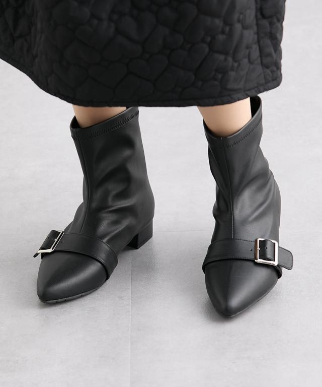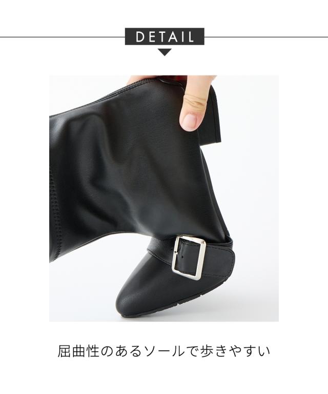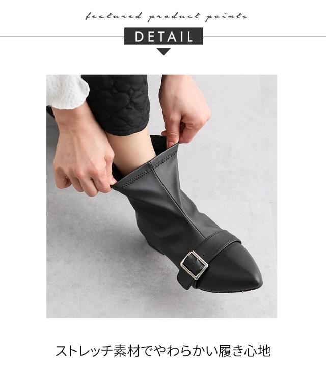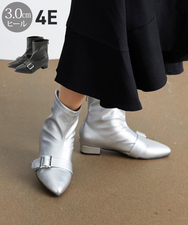 秋から春まで長く活躍できるストレッチショートブーツ。ストレッチ素材を使用しているので締め付けなく足にフィット。きれいめな見た目ながら履き心地はゆったりカジュアルに履いていただけます。ポインテッドトゥの上品なデザインで足元をすっきりと見せつつ、きらっと光るベルト金具がワンポイント。デザイン性と機能性を兼ね備えた一足で、日常のコーディネートにぴったりです。 ■ポイント ストレッチ素材の甲革(合皮) 足入れしやすいバックファズナー 立体設計のクッション性ある中敷きを使用(取り外し不可) 屈曲性のあるソールで歩きやすい ポインテッドトゥ&飾りベルトはカジュアルにもフェミニンにも合わせやすい 【ニッセンオリジナルの大きいサイズ規格】 本当に合う靴に出会った事はありますか ニッセンの4Eは、靴底の幅を広げ、甲や足首周りもゆったりの独自設計。 靴のサイズにお悩みのお客様へ向けて、サイズが大きくてもバランス良くきれいに見えるよう企画したオリジナルシューズです。