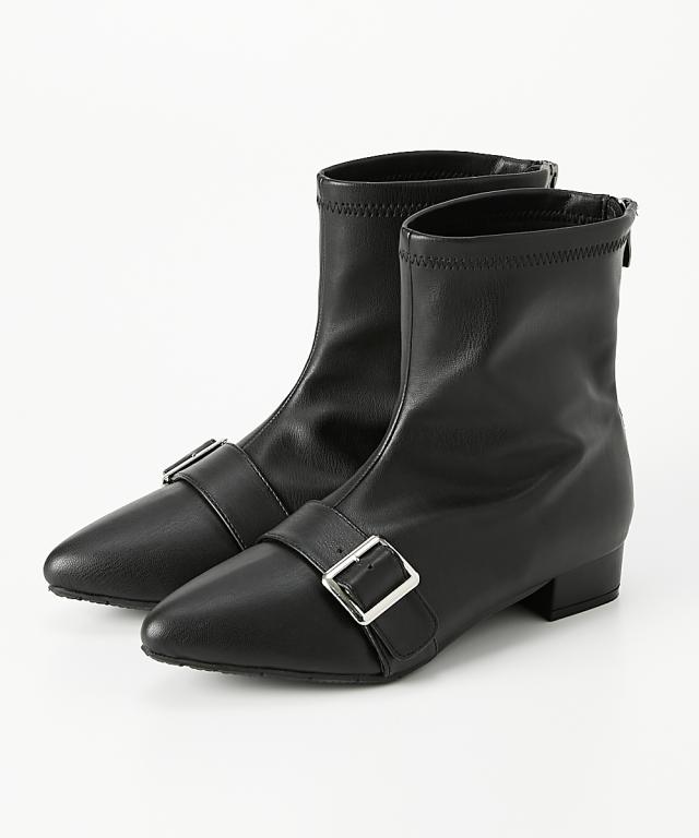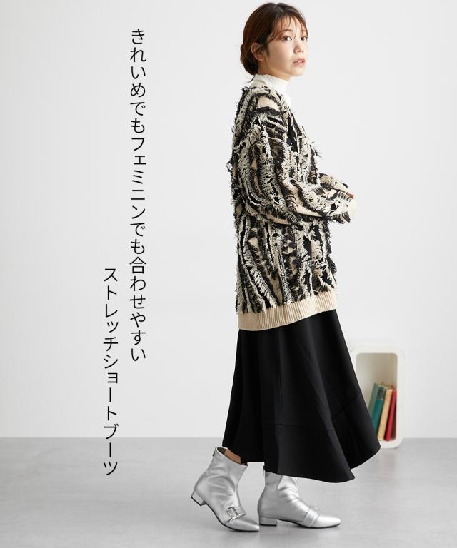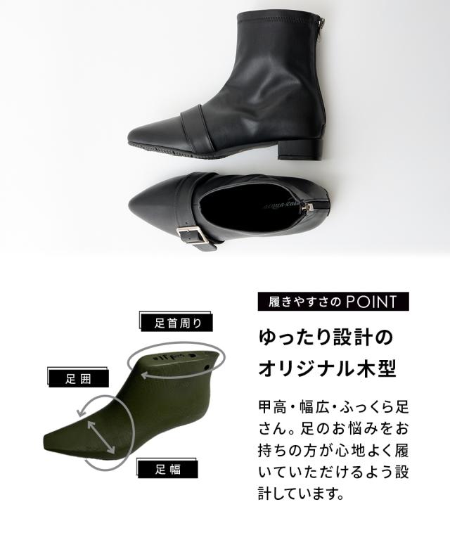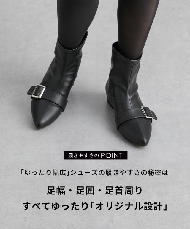 大きいサイズ レディース ゆったり幅広 ポインテッドトゥ ストレッチ ショート ブーツ ワイズ4E シューズ 23.0〜23.5/24.0〜24.5cm ニッセン nissen