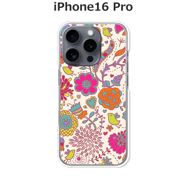 iPhone16 Pro ケース アイフォン16プロ TPUソフトケース 花×小鳥 TPUソフトカバー スマホケース