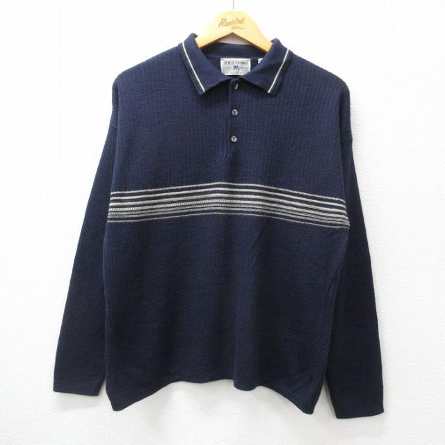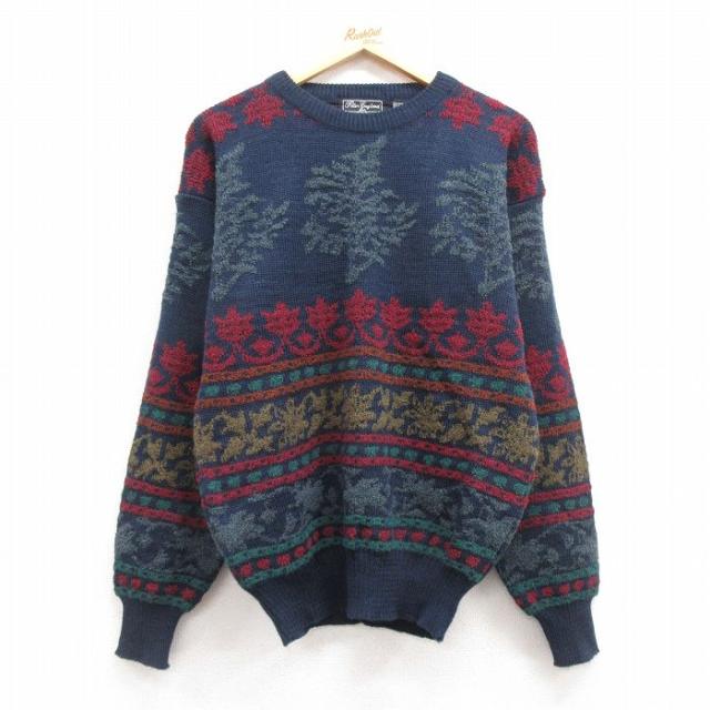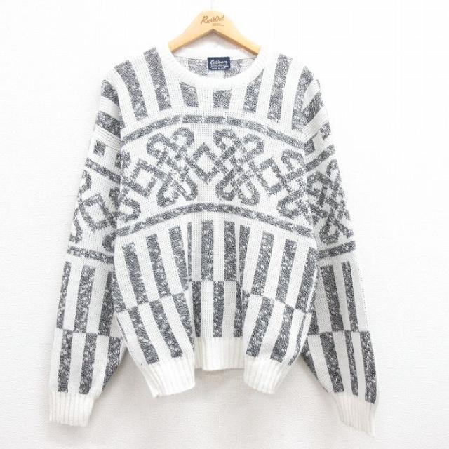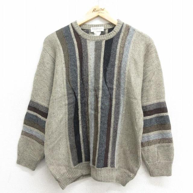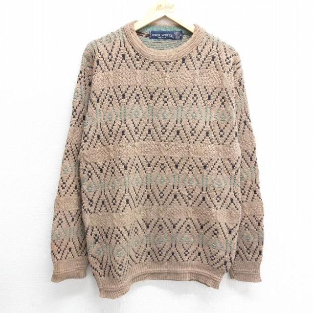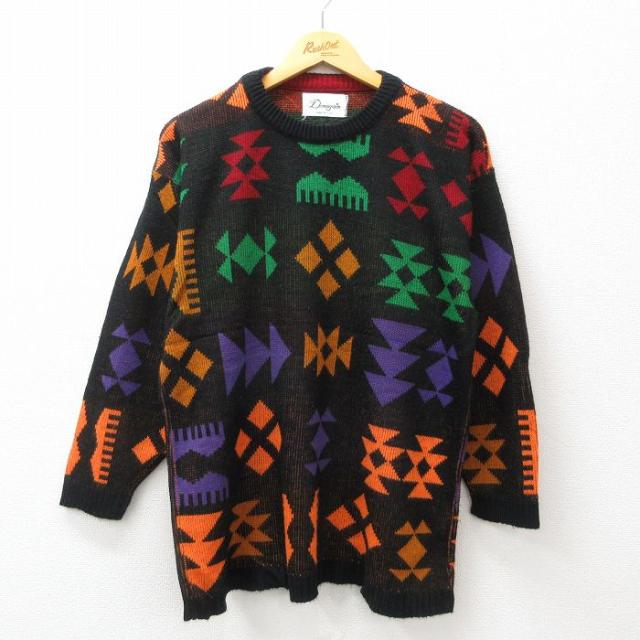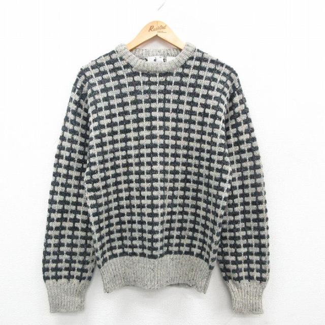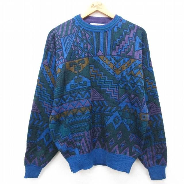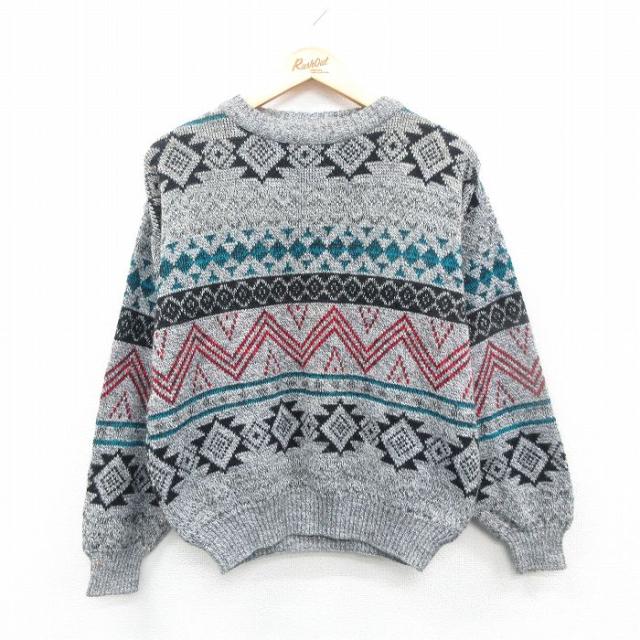 古着 長袖 セーター メンズ 90年代 90s ネイティブ柄 ラグ柄 クルーネック イタリア製 グレー他 Mサイズ 中古 ニット トップス 中古 古着