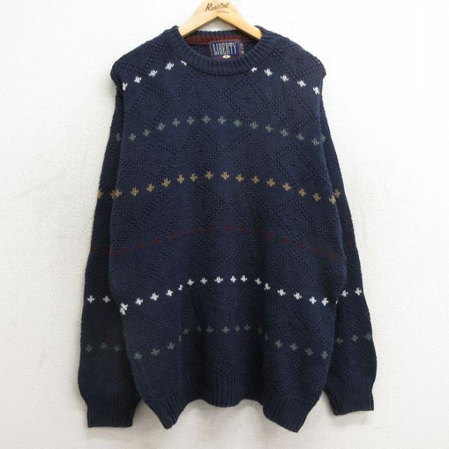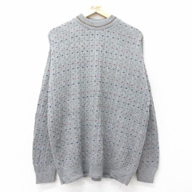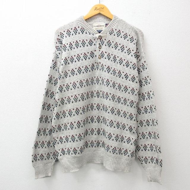 古着 リバティ 長袖 セーター メンズ 90年代 90s コットン ヘンリーネック USA製 グレー 霜降り Lサイズ 中古 ニット トップス 中古 古着