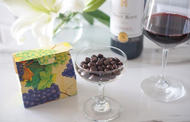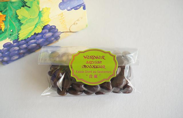 原材料名:レーズン、砂糖、チョコレート、ぶどう糖、果実酒(貴腐ワイン)/香料。光沢剤、増粘剤(アラビアガム)、(一部に乳成分・大豆を含む)