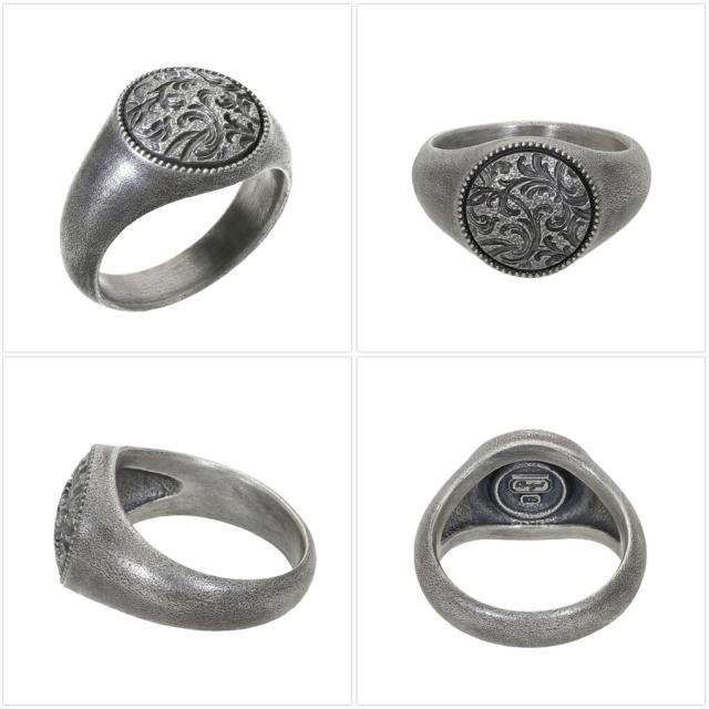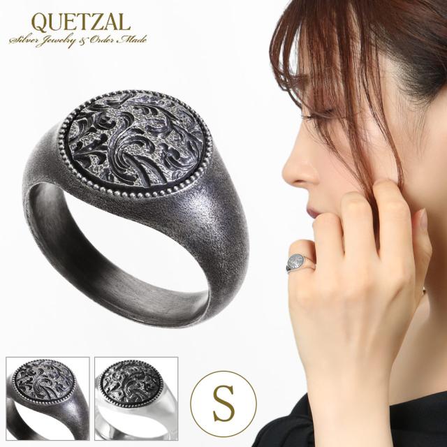 Quetzal スクロール シグネットリング ラウンド S 1号〜17号 指輪 リング 印台リング ピンキーリング 小指 シルバー ブランド ケツァール ケツアール