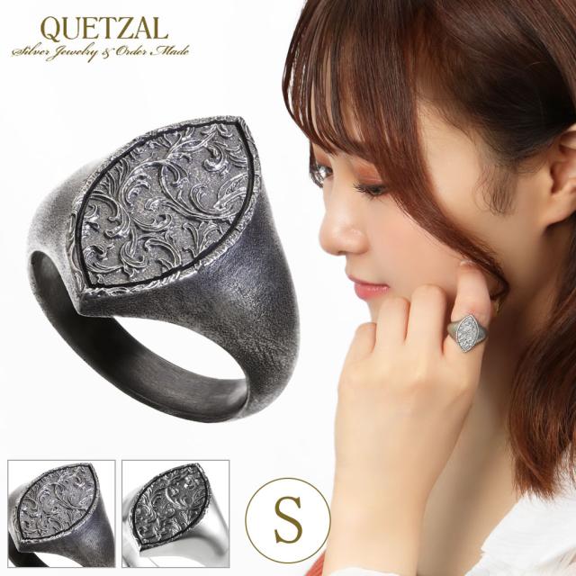 Quetzal スクロール シグネットリング マーキス S 5号〜15号 指輪 リング 印台リング ピンキーリング 小指 シルバー ブランド ケツァール ケツアール