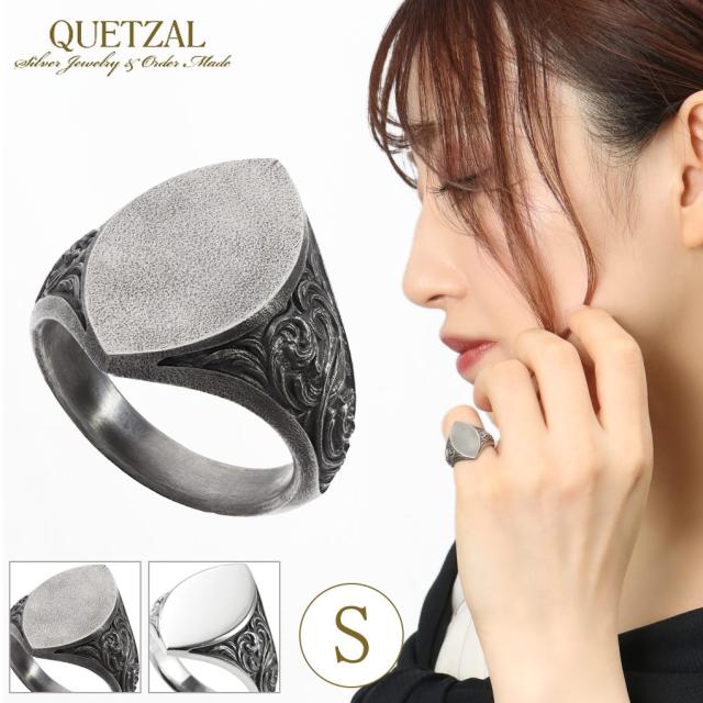 Quetzal スクロール シグネットリング マーキス2 S 5号〜15号 指輪 リング 印台リング ピンキーリング 小指 シルバー ブランド ケツァール ケツアール