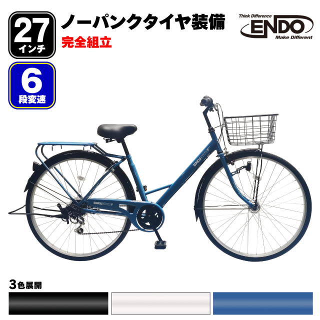 【置き配商品】 自転車 27インチ ノーパンクタイヤ オートライト シマノ 変速 シティサイクル パンクレス 空気入れ不要 ガクチャリ 自転車本舗 エンドウ商事 通学 完全組立 送料無料