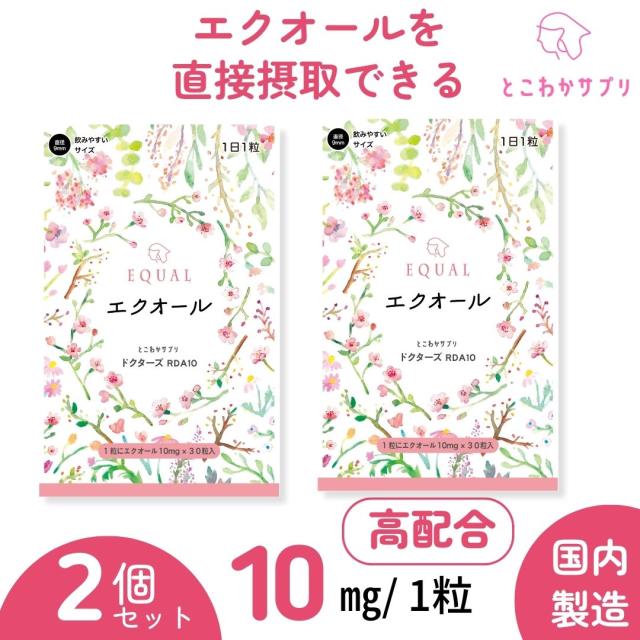 2個セット エクオール10mg 1粒 30粒入 30日分 国内製造 S-エクオール 発酵大豆イソフラボン エクオールを直接摂取 産婦人科医監修 とこわかサプリ ドクターズ RDA10 agesugi_sbe