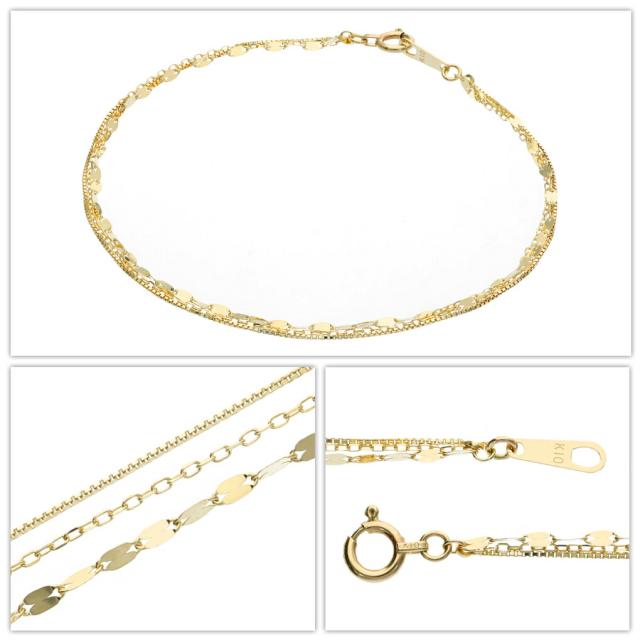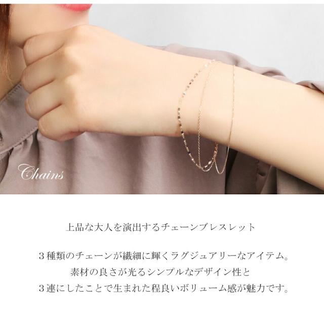 ピンキー&ダイアン K10 ゴールド 3連 チェーン ブレスレット 10金 10k チェーンブレスレット きれい 上品 大人 華奢 細め お呼ばれ