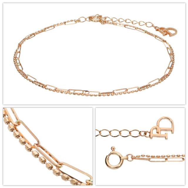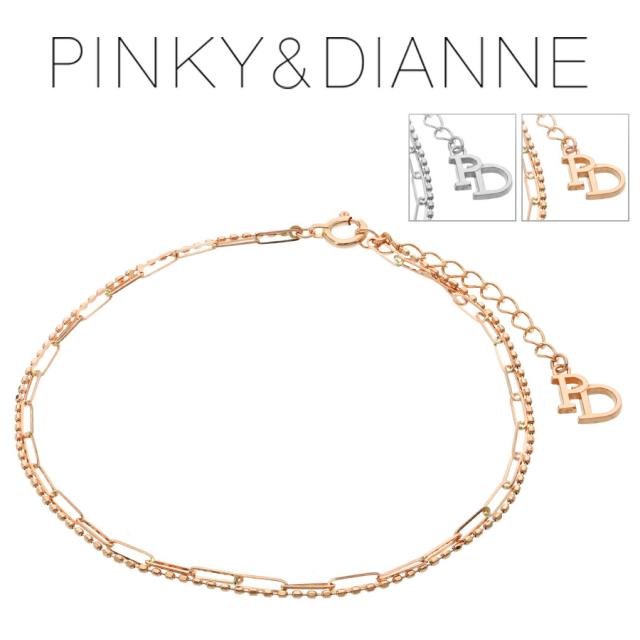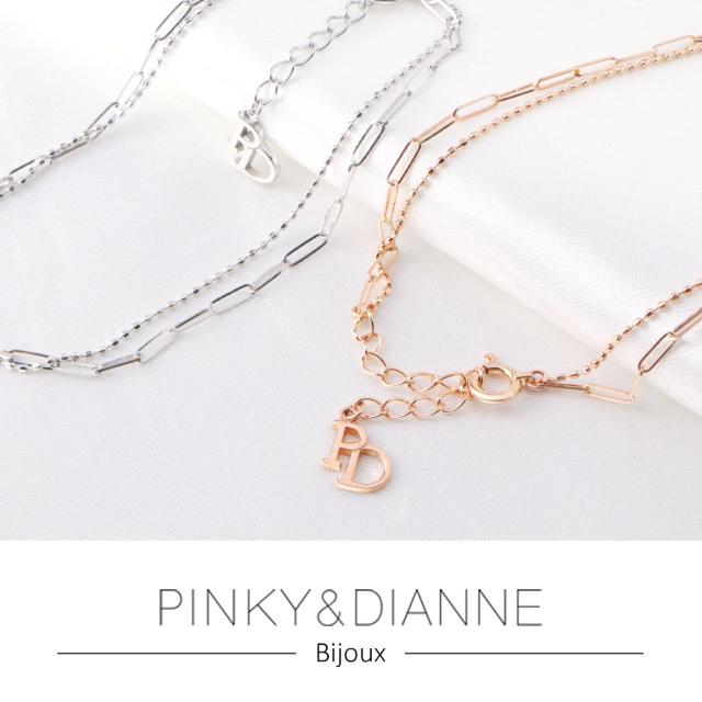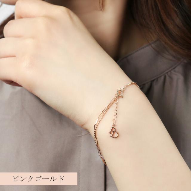 ピンキー&ダイアン 選べる2カラー K10 ロゴチャーム 2連 チェーン ブレスレット 10金 10k ゴールド ピンクゴールド ホワイトゴールド きれい 上品