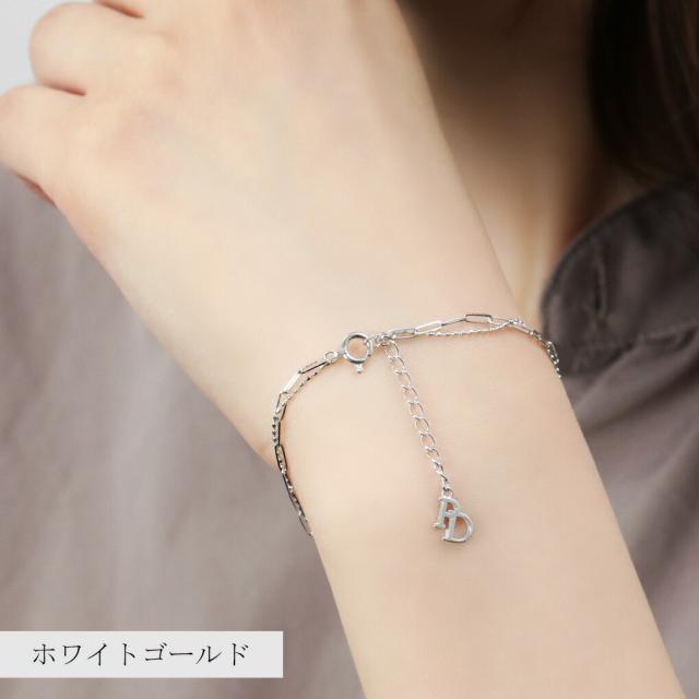 繊細な2種類のチェーンが上品な手元を作り上げるさらりと身に着けやすいシンプルなチェーンブレスレット。
