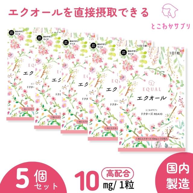 5個セット エクオール10mg 1粒で 30粒入 30日分 国内製造 S-エクオール 発酵大豆イソフラボン エクオールを直接摂取 産婦人科医監修 とこわかサプリ ドクターズ RDA10 agesugi_sbe