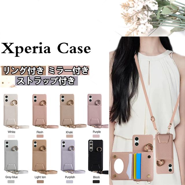 〇 ミラー&リング&ショルダーストラップ&カード収納ポケット付き、大人気のスマホショルダーケースが登場!