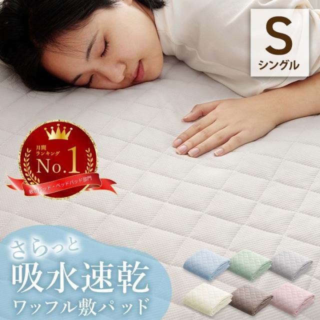 敷きパッド シングル 洗える 「 ワッフル敷パッド 」 抗菌防臭 吸水速乾 オールシーズン 新生活 年中 敷パッド おしゃれ かわいい さらさら ブルー グリーン グレー アイボリー モカ ピンク
