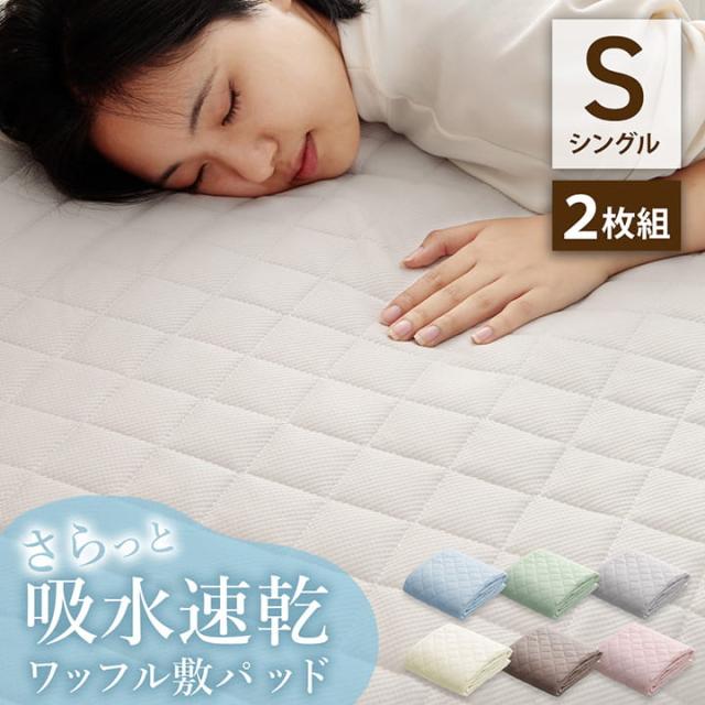 敷きパッド シングル 洗える 2枚組 「 ワッフル敷パッド 」 抗菌防臭 吸水速乾 オールシーズン 年中 敷パッド おしゃれ かわいい さらさら ブルー グリーン グレー アイボリー モカ ピンク