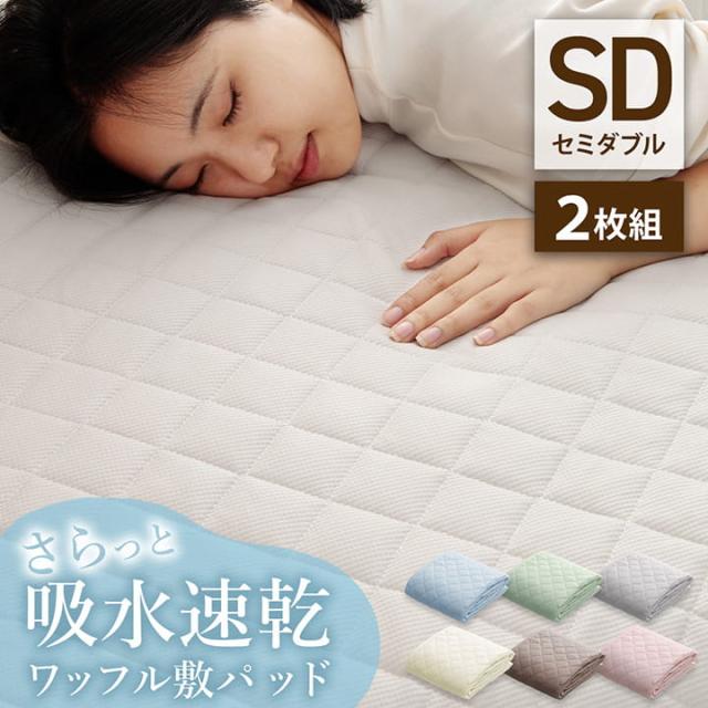 敷きパッド セミダブル 洗える 2枚組 「 ワッフル敷パッド 」 抗菌防臭 吸水速乾 オールシーズン 年中 敷パッド おしゃれ かわいい さらさら ブルー グリーン グレー アイボリー モカ ピンク