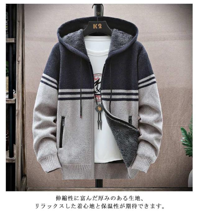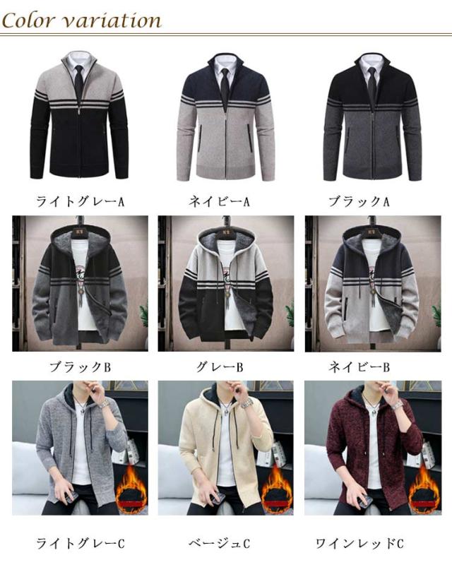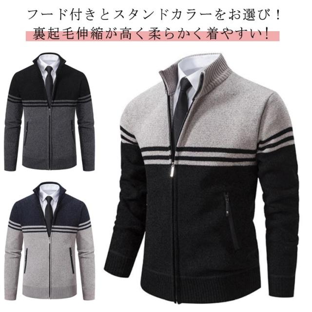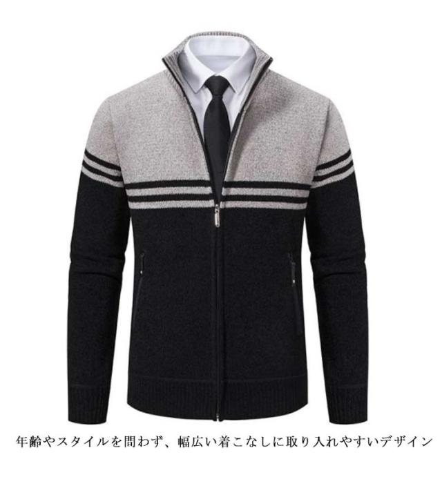 ビジネス カジュアル 厚手 カーディガン 無地 長袖セーター メンズ カーディガン ニットカーディガン 防寒 暖かい 裏起毛 冬 ニットジャケット ライトアウター 秋服 冬服 大人 タートルネック ジップセーター ジップアップ フルジップ 大きいサイズ
