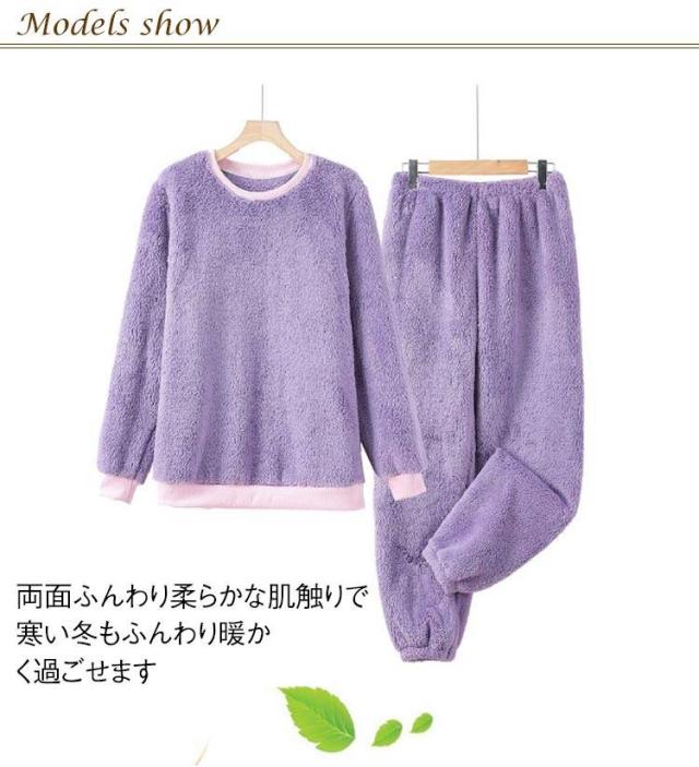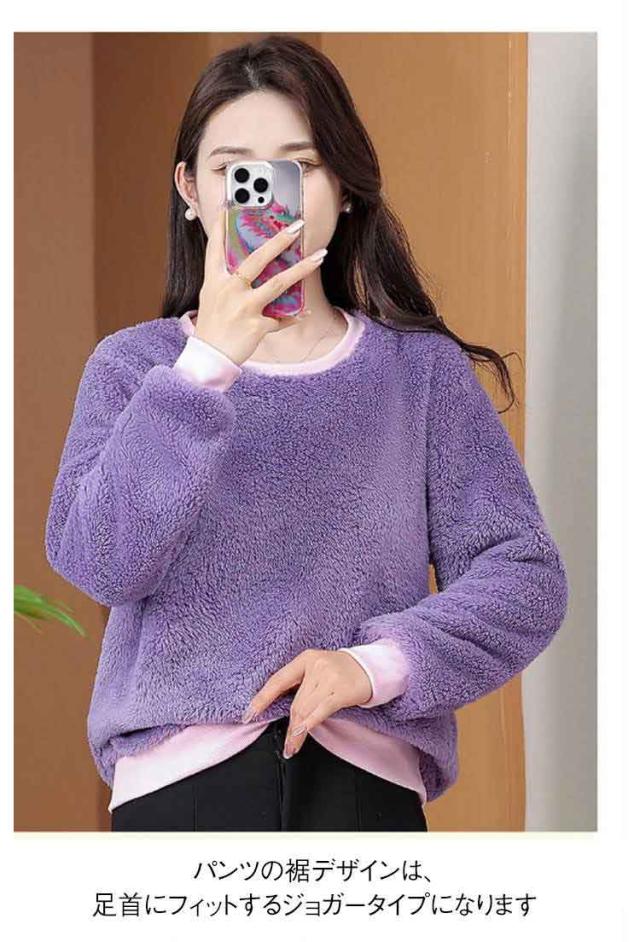 | あったか素材でお部屋の中での防寒対策にぴったり。軽量な着心地でお家でのリラックスタイムには最適です 両面ふんわり柔らかな肌触りで寒い冬もふんわり暖かく過ごせます 暖かさだけではなく、ストレッチ性もあり、着心地にもこだわっています。 ゆったりとしたシルエットになっているので締め付け感はありません。 ウエストゴムでストレスフリーな履き心地。 パンツの裾デザインは、足首にフィットするジョガータイプになります | |