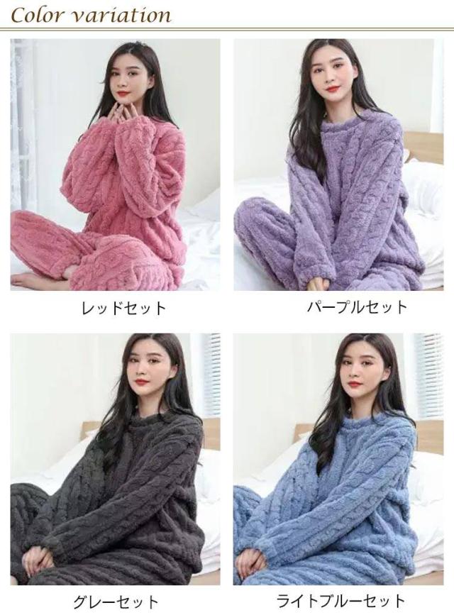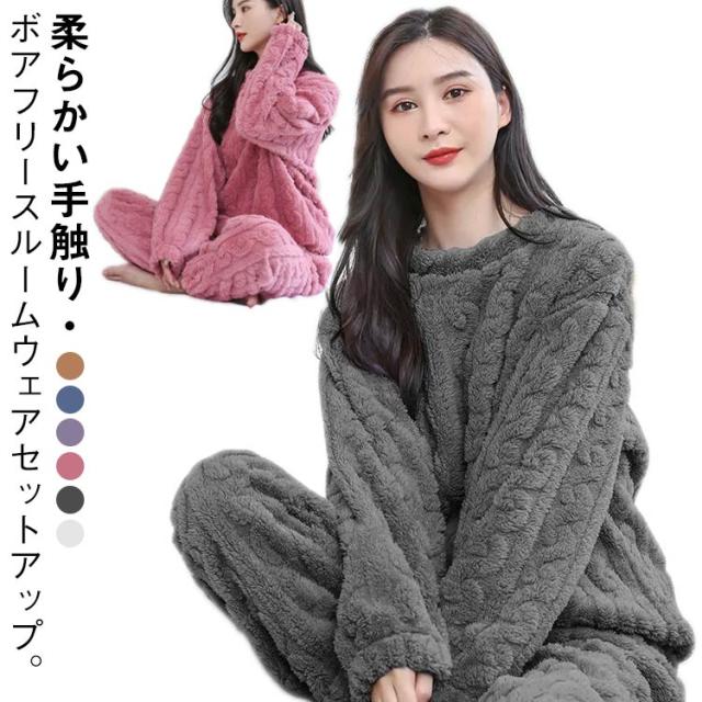 ボア 部屋着 パジャマ 上下セット パジャマ ルームウェア もこもこ ふわふわ 暖かい セットアップ 冬 裏起毛 冬用 かわいい 長ズボン 寝巻 おしゃれ あったか 防寒 レディース パンツ シンプル 無地 ゆったり フランネル 長袖 リラックス プレゼント 冷え対策