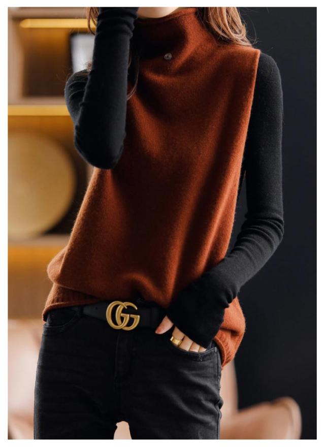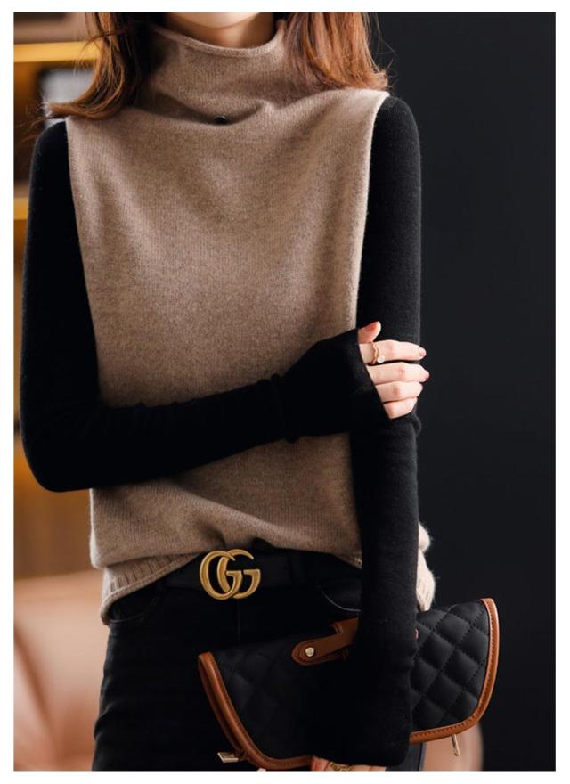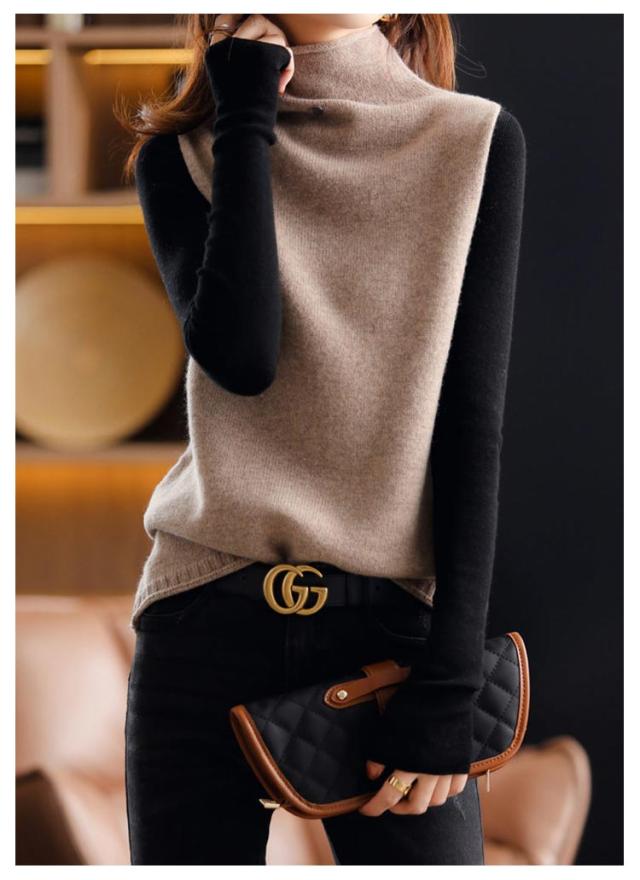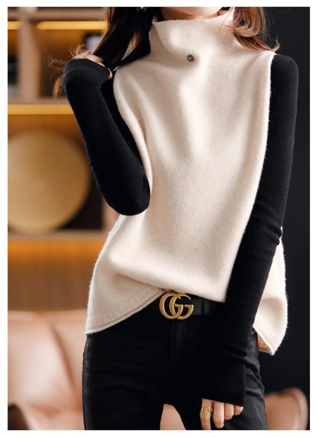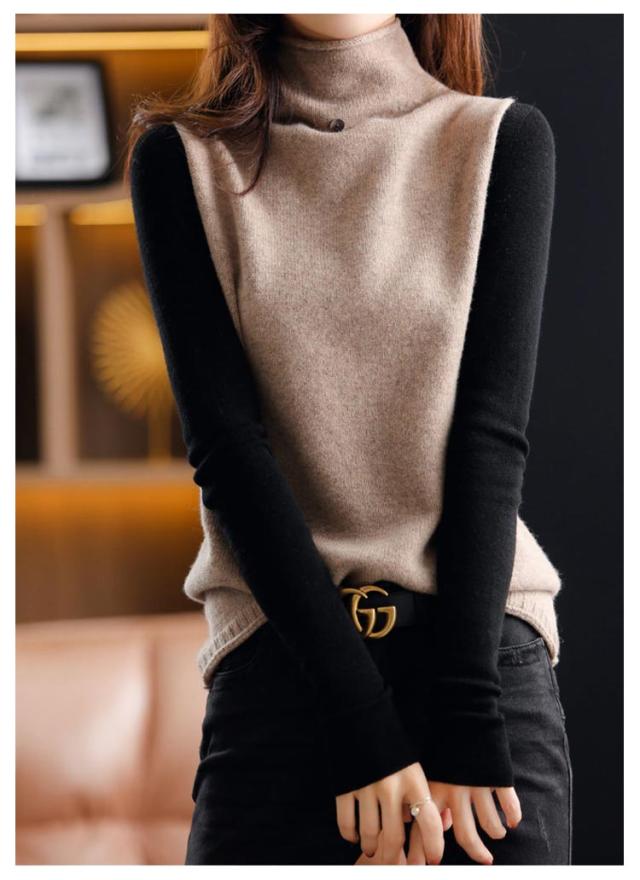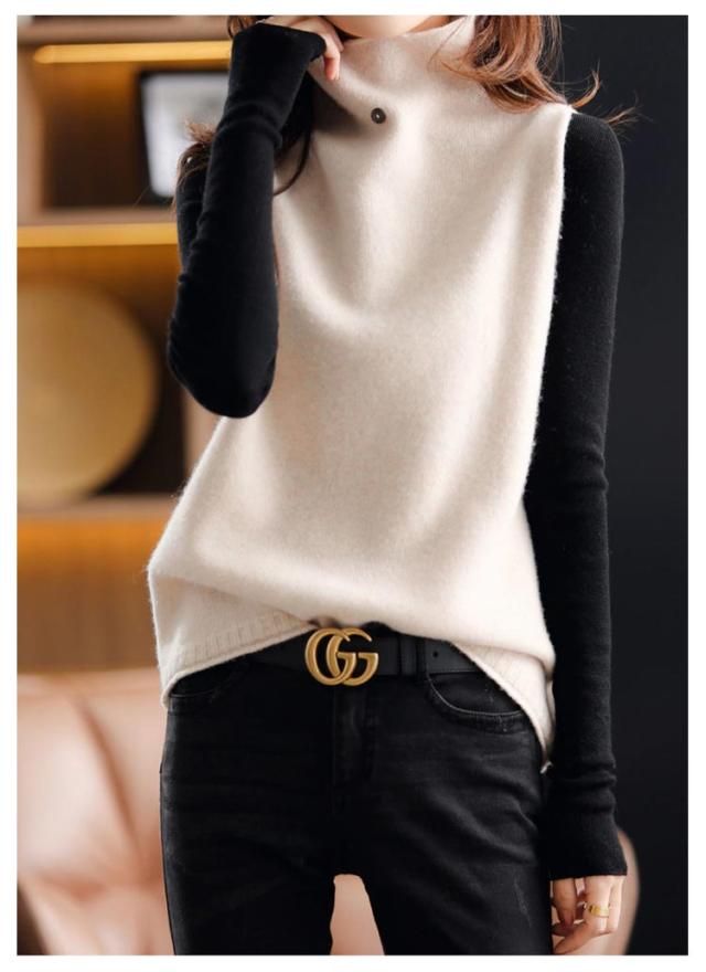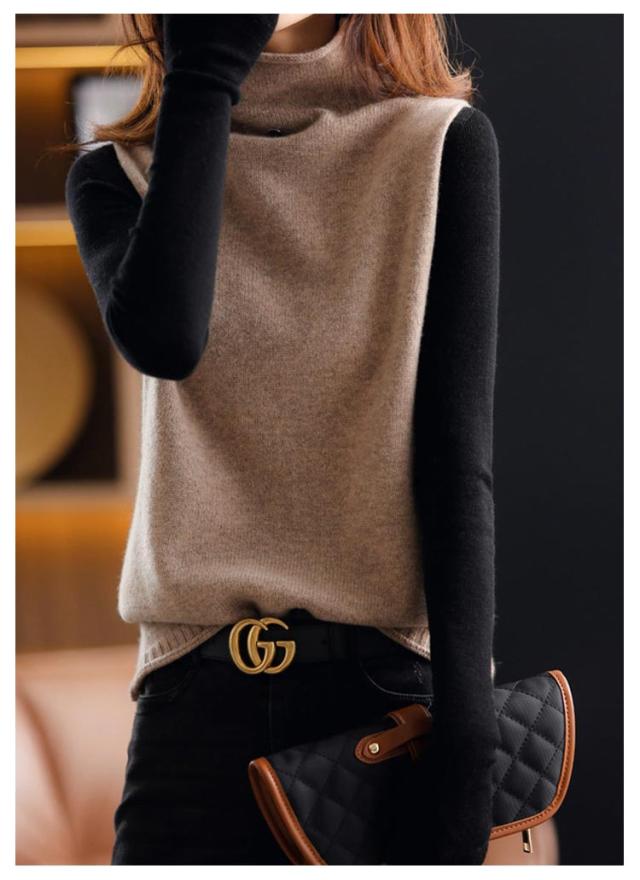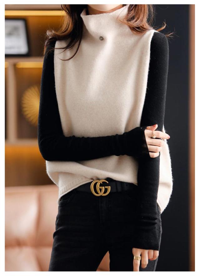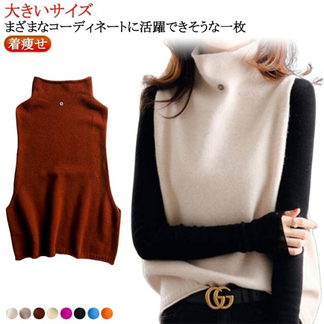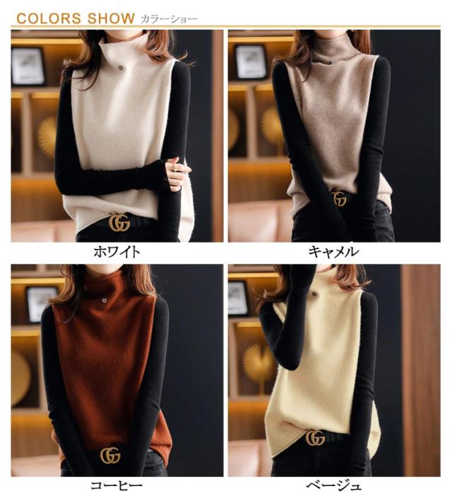 ハイネック 着回し ニットベスト ママコーデ 上品 セーター ニットベスト カジュアル ゆったり 秋冬 ニットセーター 韓国風 体型カバー 通勤 着痩せ 無地 レディース 春 大きいサイズ 上品 お洒落 通学 ノースリープ