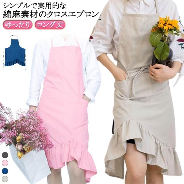 【送料無料】エプロン 【送料無料】エプロン ワンピース キャミワンピ レディース 綿麻 ゆったり 大きいサイズ ロング丈 かぶるだけ プレゼント おしゃれ ナチュラル シンプル カフェエプロン 北欧風