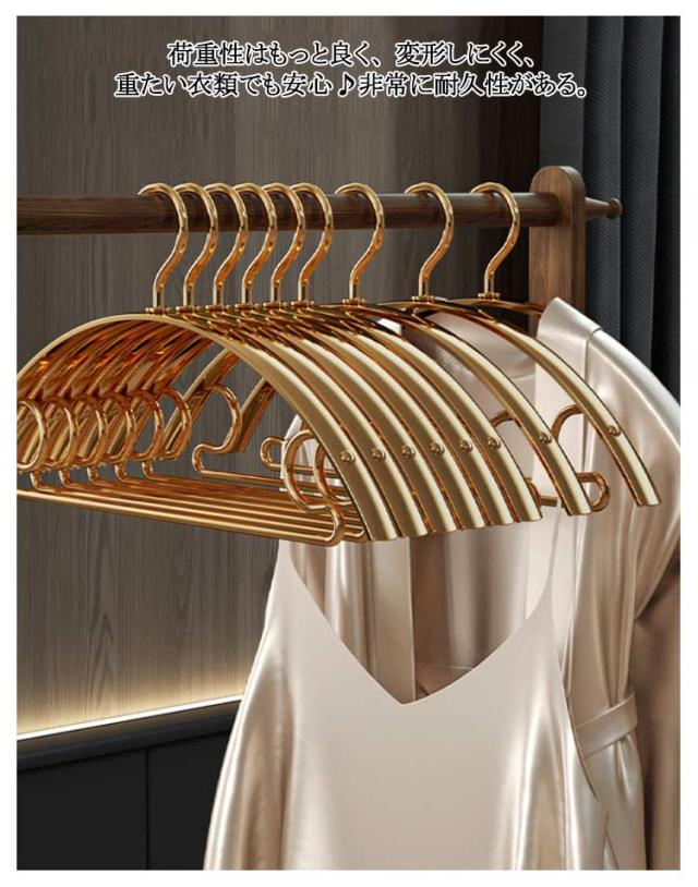 | 豪華であるお洒落なアルミハンガー10本セット!。 非常に丈夫で耐久性がある高品質アルミニウム合金素材を採用。 肩の部分が丸く作れているので、ハンガーの跡が付きにくく、型崩れにくい。 15キロまで 耐えれる耐久性も兼ね備えており重たいコートやジャケットも問題ありません! 荷重性はもっと良く、 変形しにくく、 重たい衣類でも安心♪非常に耐久性がある。 | |