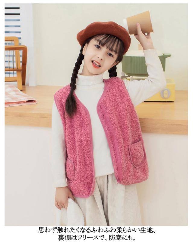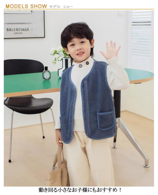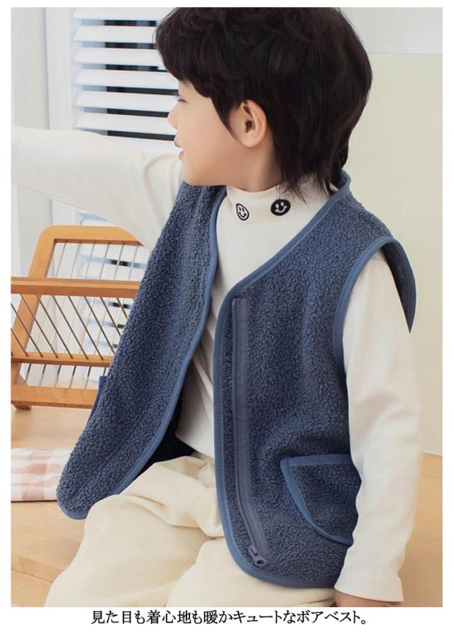 子ども ベスト ボア 送料無料 ジュニア ベビーベスト アウター カジュアル ファッション トップス キッズ ボアベスト子供 無地 送料無料 男の子 襟なし フード無し ノーカラー ナチュラル 冬 温かい 暖かい 上着 通園 ジャケット