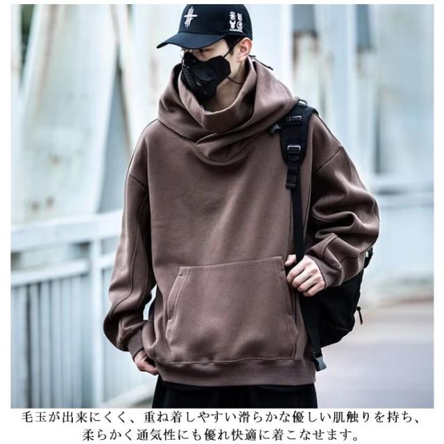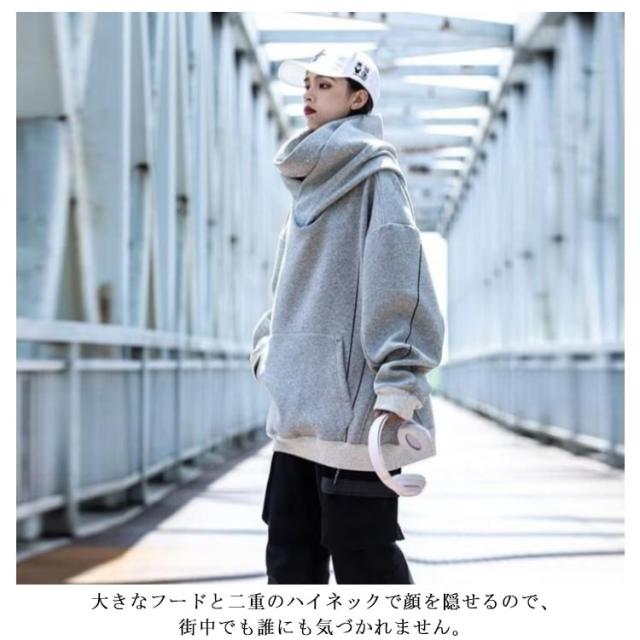 ボリュームネックパーカー メンズ プルオーバーパーカー タートルネック ボリュームネックパーカー レディース スウェット フード付き 春秋 ゆったり 大きいサイズ おしゃれ