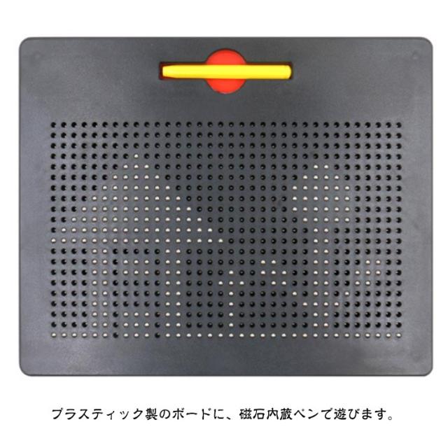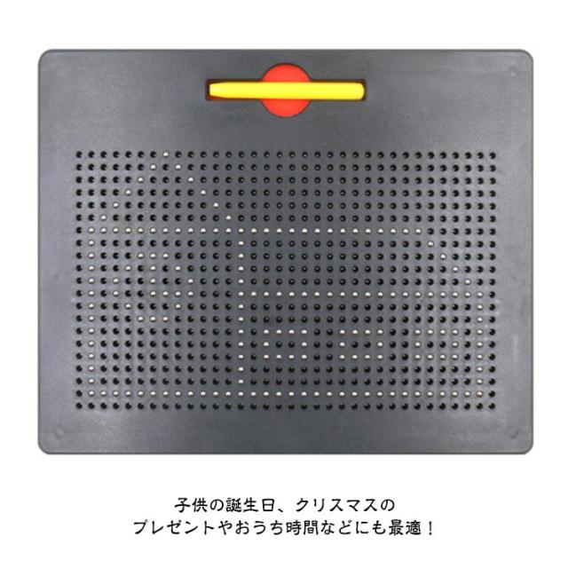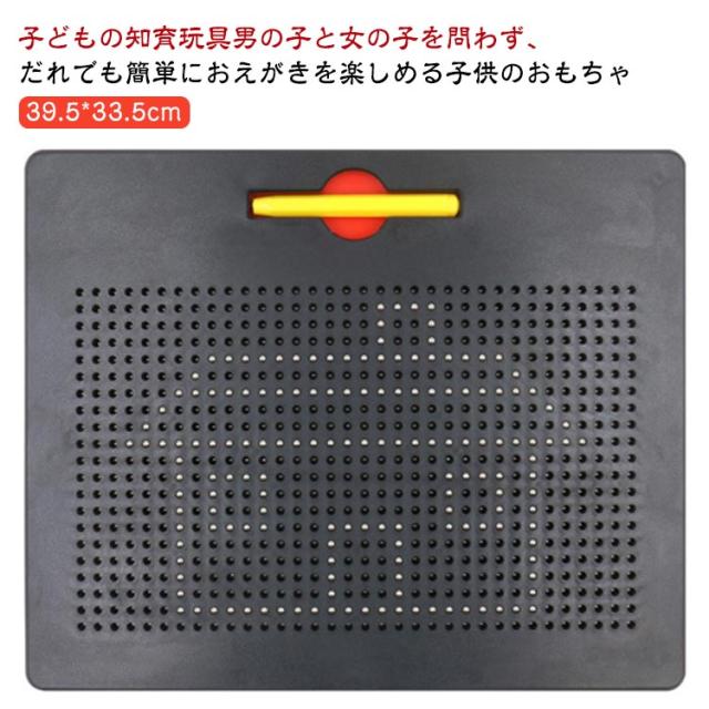 | 子どもの知育玩具男の子と女の子を問わず、だれでも簡単におえがきを楽しめる子供のおもちゃ 想像力を使って絵、形、文字、数字を描くことができます! プラスティック製のボードに、磁石内蔵ペンで遊びます。 付属のマグネットペンでボードをなぞって中のボール(鉄球)を引き上げ、字や形、絵を描いてみよう! 指でボールを軽く押すだけで消せますので、失敗しても気にせず描けます。 遊びの幅も広がり、色々な絵に挑戦できます。 周りやお洋服を汚さずに遊べるので、安心です◎ 何度でも描くことができて楽しいです♪ ぷつぷつと銀色のボールがペンとくっついている音がストレス発散にとても快適! 子供の誕生日、クリスマスのプレゼントやおうち時間などにも最適! | |