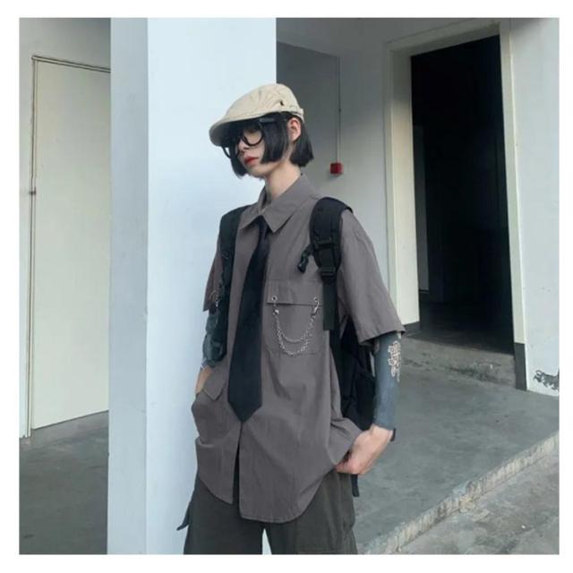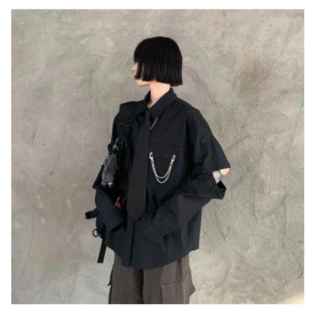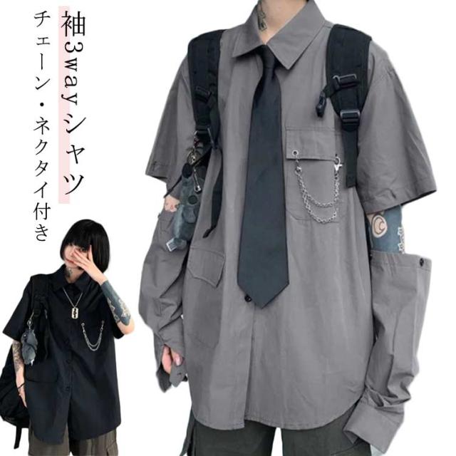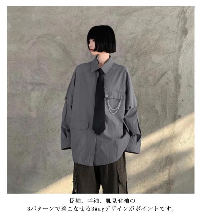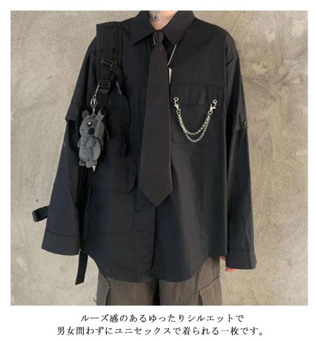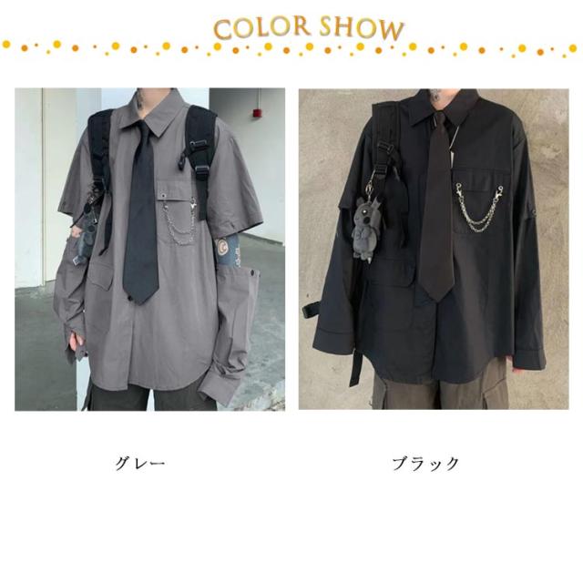 | 【袖3wayシャツ】【チェーン・ネクタイ付き】 長袖、半袖、肌見せ袖の3パターンで着こなせる3Wayデザインがポイントです。着ていくシーンや気分、気温に合わせて3通り楽しむことができ、オールシーズンで活躍します。 ルーズ感のあるゆったりシルエットで男女問わずにユニセックスで着られる一枚です。 合わせるボトムスを選ばず、カジュアルからストリートファッションまで幅広いスタイリングに活躍してくれるアイテムです。 | |