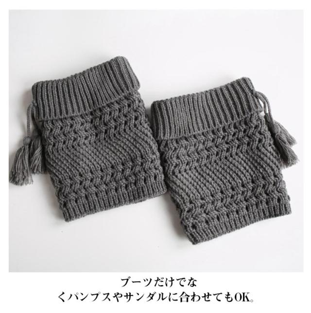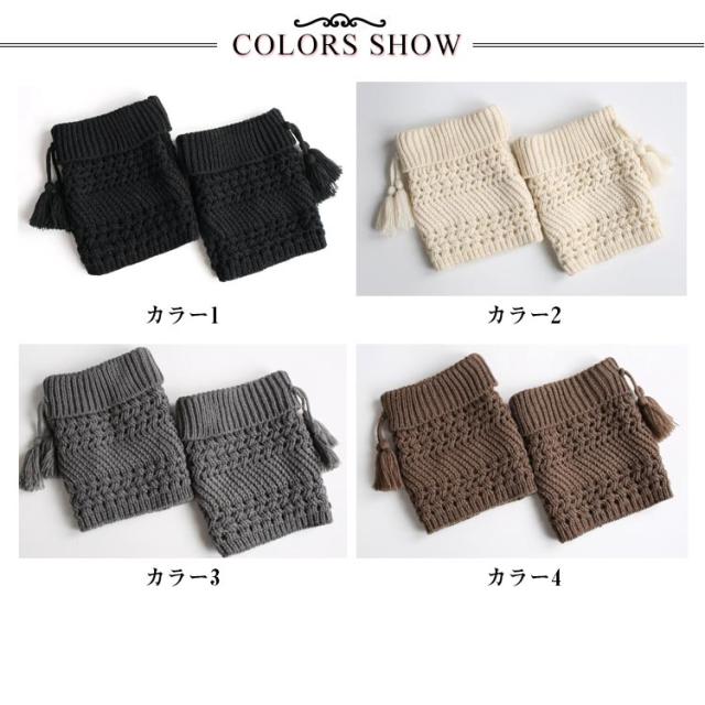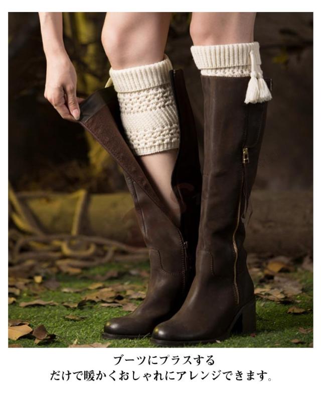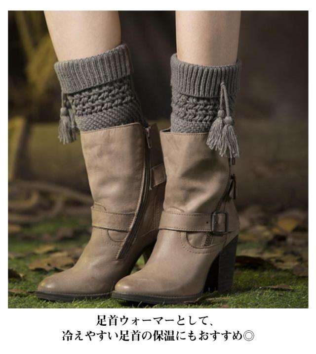 暖か レッグウォーマー 送料無料 コーデ ブーツ用 ケーブ編み オシャレ ニット フリンジ付き アクセサリー 冷え防止 可愛い 防寒 足首ウォーマー むくみ 冷房 保温 冷え取り 靴下 ソックス レッグカバー スニーカー 靴 シューズ ハーフブーツアレンジ
