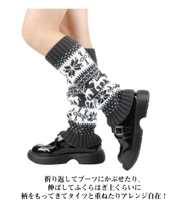 ニットレッグウォーマー あったか 足首ウォーマー 防寒 ノルディック柄 防寒 冷えとり レッグウォーマー レディース ロング丈 送料無料 送料無料 ウール混 くしゅくしゅ 靴下 ミドル丈 総柄 かわいい 秋冬