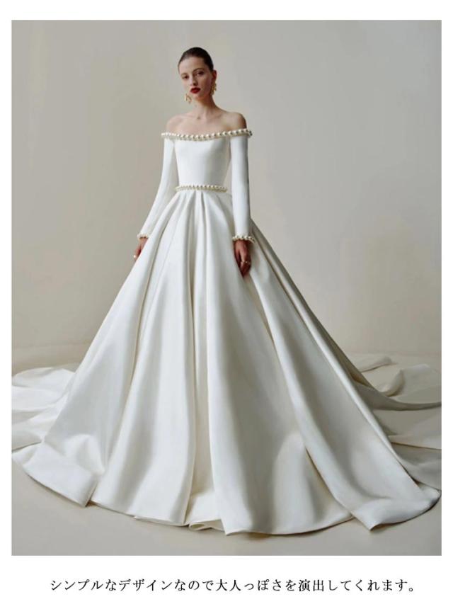 ウェディングドレス プリンセスドレス ブライダル 海外撮影 挙式 トレーン dress wedding 二次会 結婚式 フォーマルドレス ロングドレス 花嫁 お嬢様 パール調 お呼ばれ 披露宴 プリンセスライン