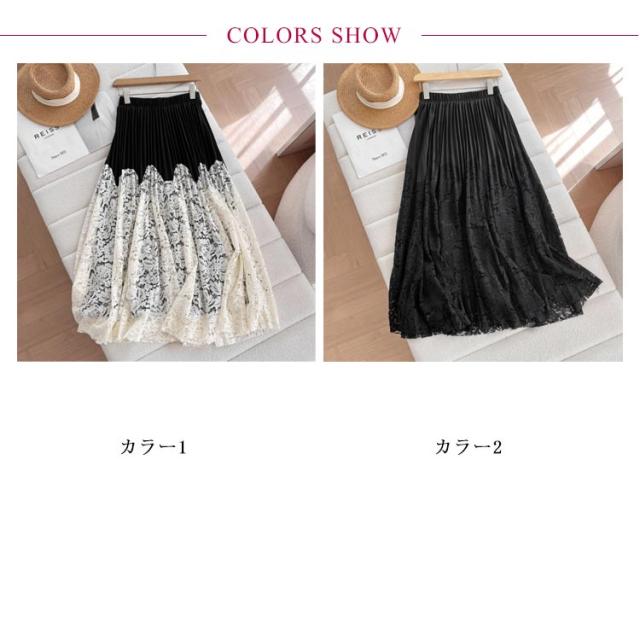 | 繊細で柔らかなレース素材と切り替えのプリーツスカート。 カジュアルに合わせやすい印象に仕上げました。 歩くたびに優雅に揺れ、上品な印象に仕上げてくれます。 楽な着心地と可愛さを両方叶えてくれるのがうれしいポイントです。 | |