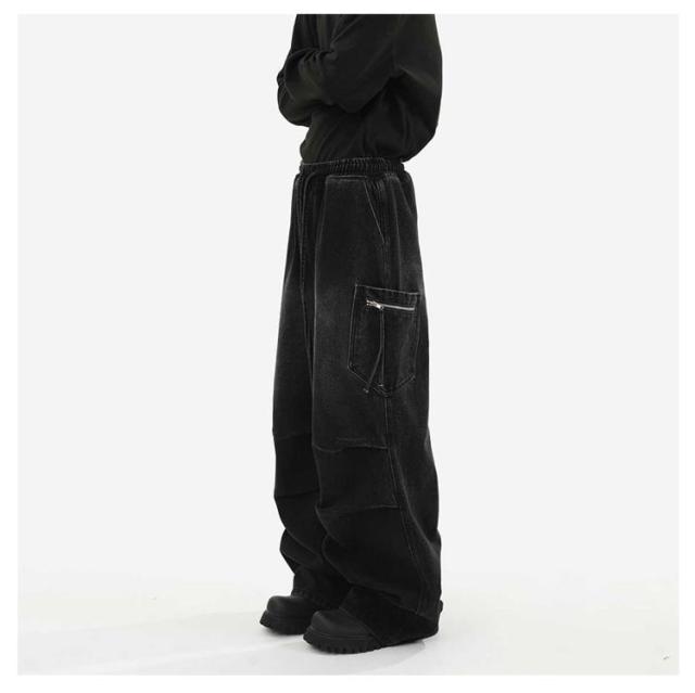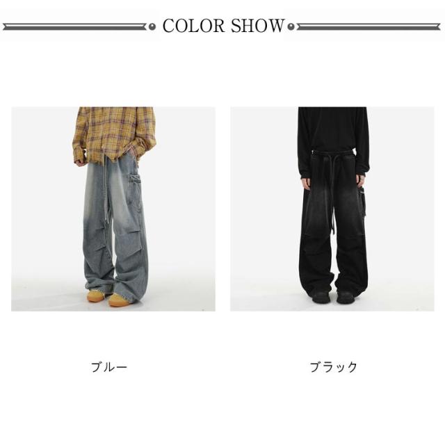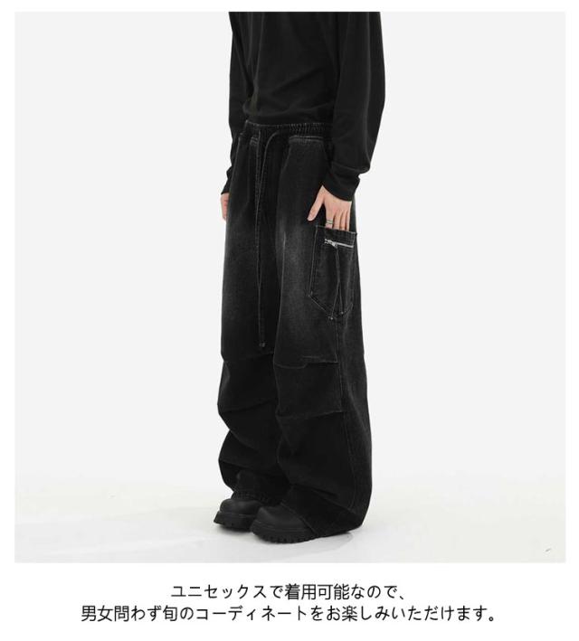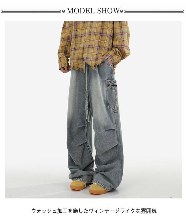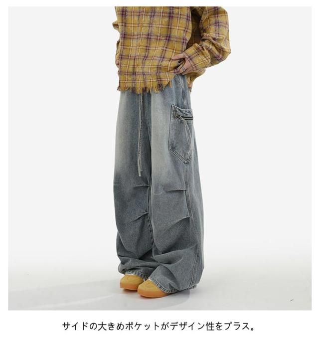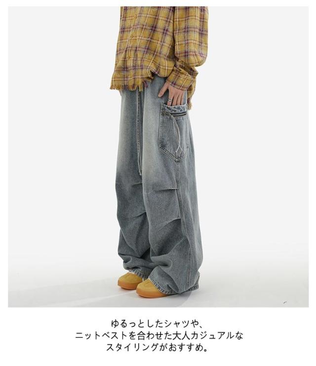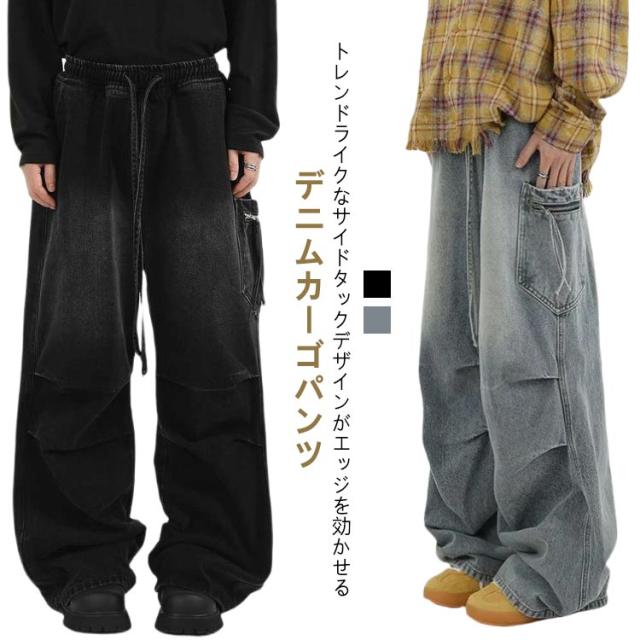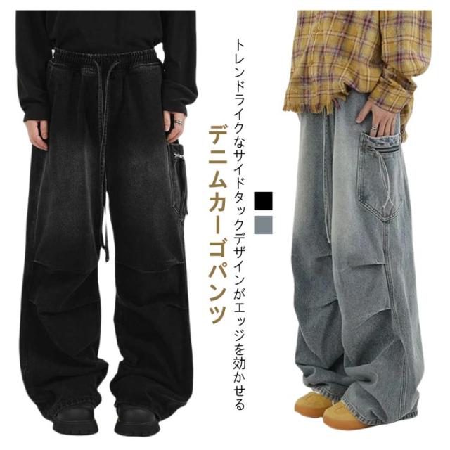 メンズ カーゴパンツ ワイド レディース タック デニムパンツ デニム ジーンズ 大きいサイズ ゆったり ジーパン ボトムス イージーパンツ ストリート
