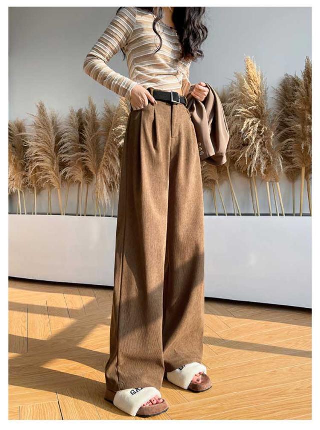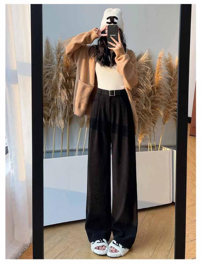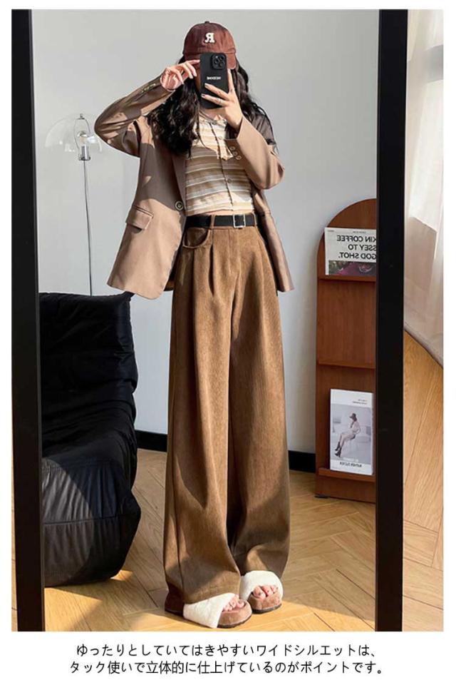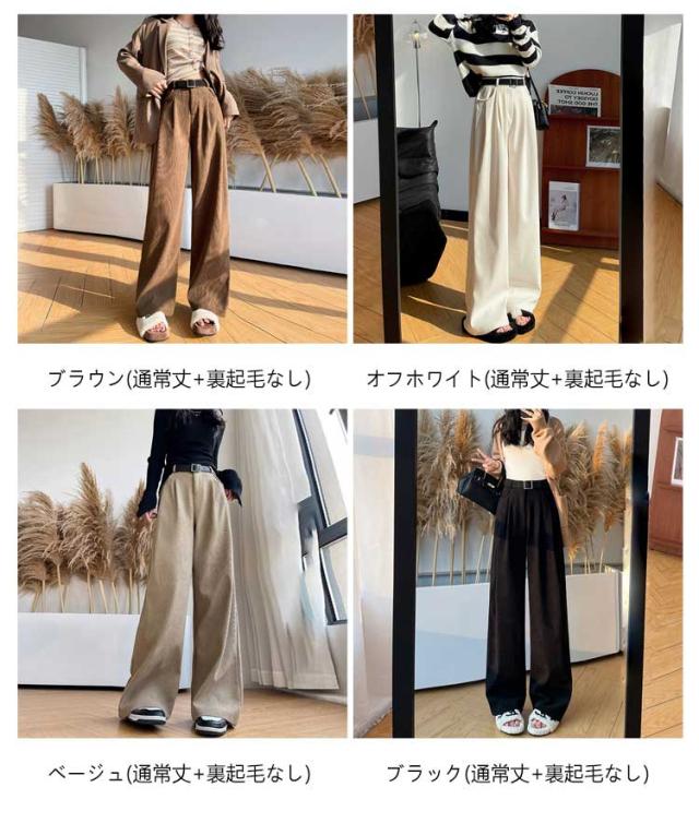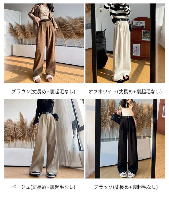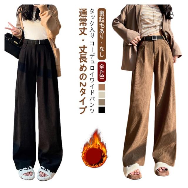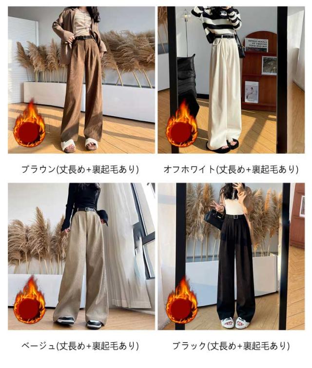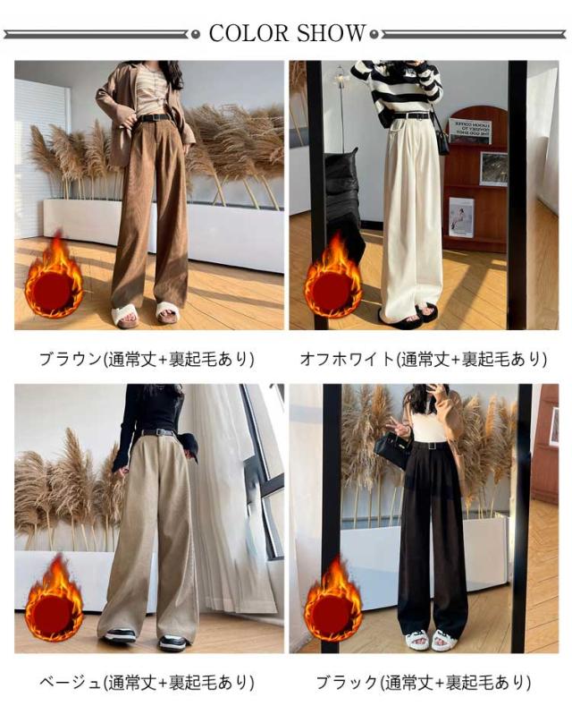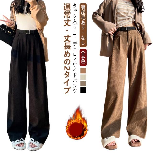 コーデュロイパンツ あったか 暖かい 秋 ワイドパンツ 裏起毛 レディース タック 冬 防寒 パンツ コーデュロイパンツ 秋冬 ストレート ゆったり ボトムス カジュアル 無地 ロングパンツ 美脚 ズボン 高身長・低身長向け