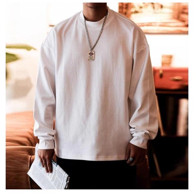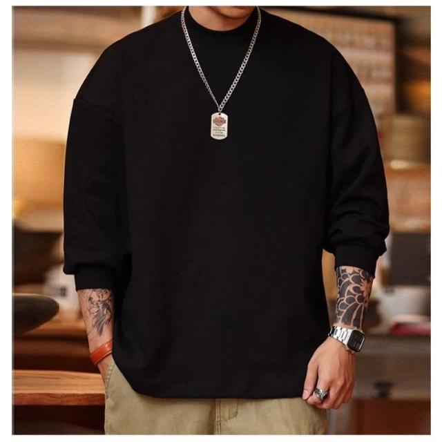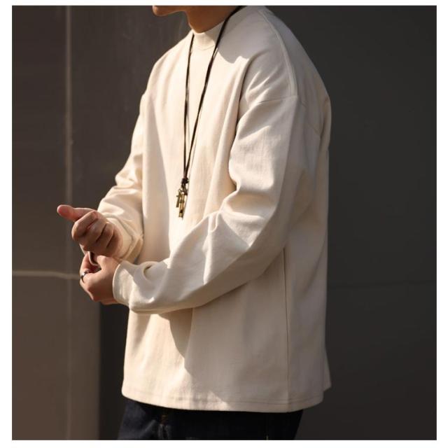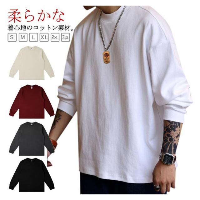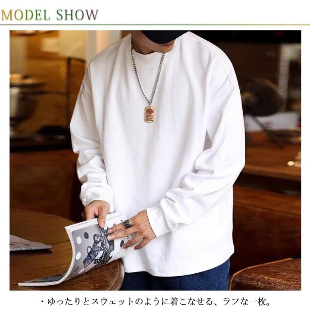 プルオーバー Tシャツ カットソー 丸首 リブスリーブ リブ袖Tシャツ 長袖 メンズ 綿 コットン トップス ロンT 無地 透けない Tシャツ シンプル 秋