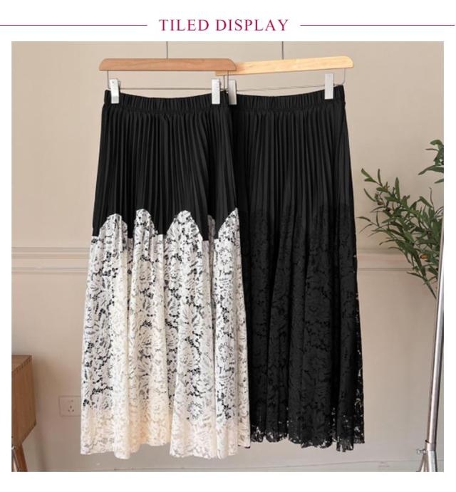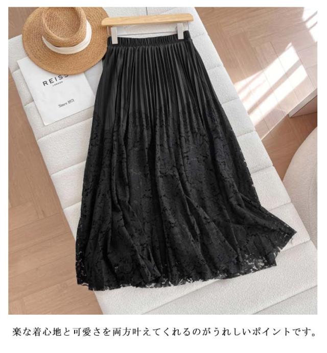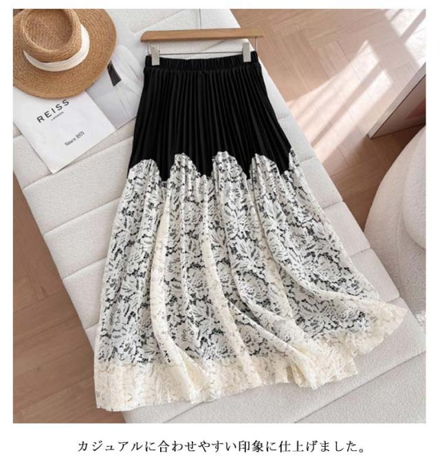 | 繊細で柔らかなレース素材と切り替えのプリーツスカート。 カジュアルに合わせやすい印象に仕上げました。 歩くたびに優雅に揺れ、上品な印象に仕上げてくれます。 楽な着心地と可愛さを両方叶えてくれるのがうれしいポイントです。 | |