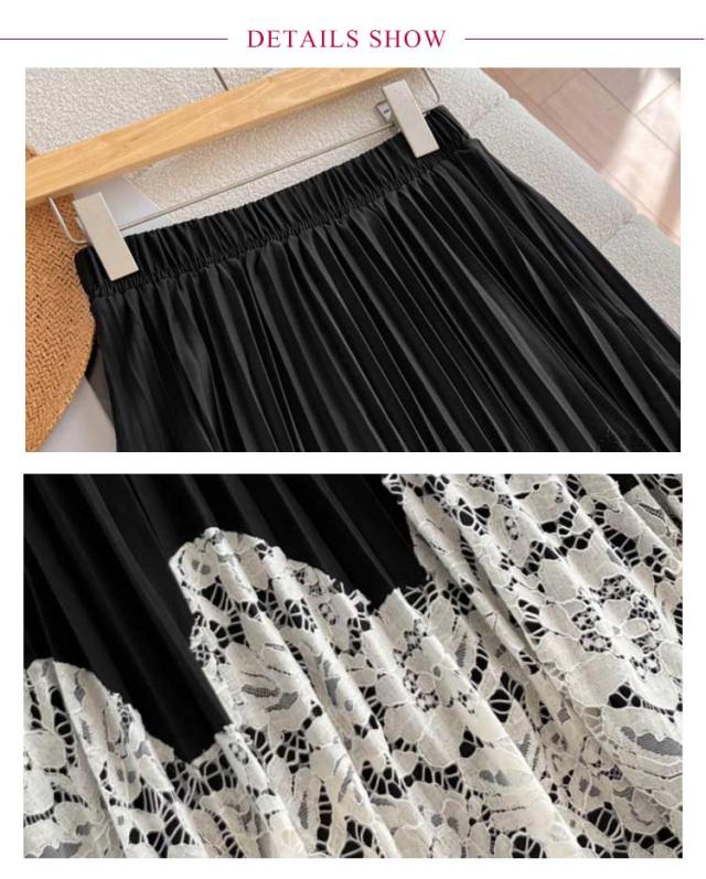 | 繊細で柔らかなレース素材と切り替えのプリーツスカート。 カジュアルに合わせやすい印象に仕上げました。 歩くたびに優雅に揺れ、上品な印象に仕上げてくれます。 楽な着心地と可愛さを両方叶えてくれるのがうれしいポイントです。 | |