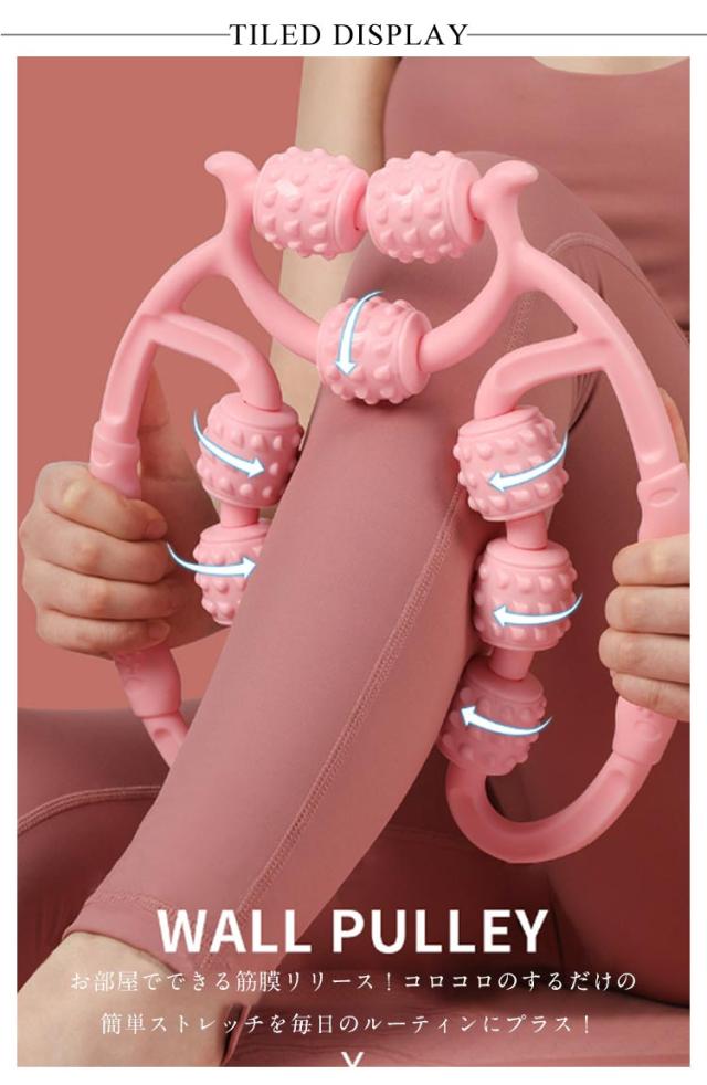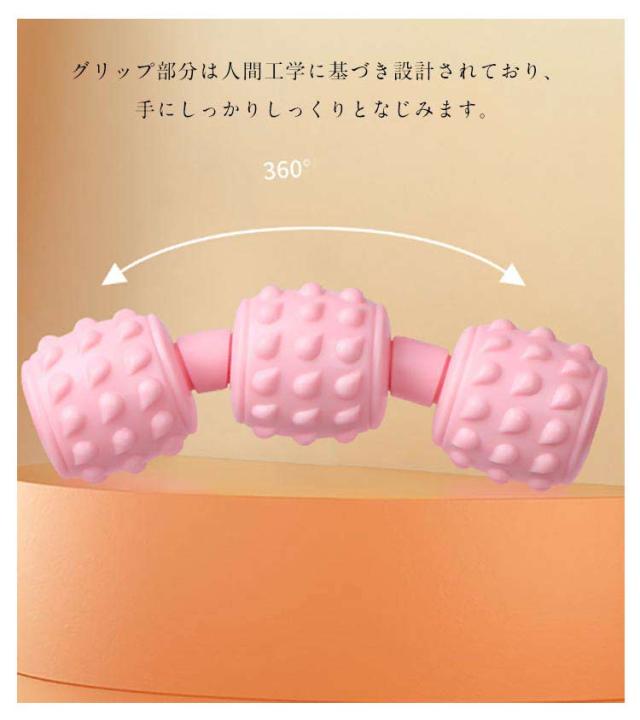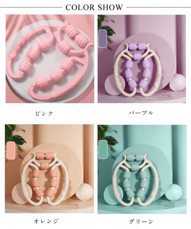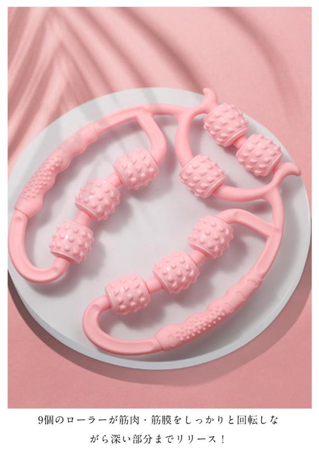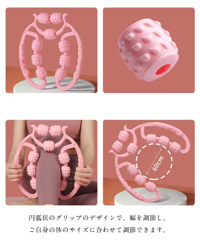 | 自宅でも簡単かつ安全にトレーニングが行えるマッサージローラー です。 円弧状のグリップのデザインで、幅を調節し、ご自身の体のサイズに合わせて調節できます。 9個のローラーが筋肉・筋膜をしっかりと回転しながら深い部分までリリース! ローラーの突起部分がほどよく刺激!挟んだ部位を均一にしっかり按摩! 可動域が幅広く、太ももやふくらはぎなど、様々な部位にフィットさせることができる。 グリップ部分は人間工学に基づき設計されており、手にしっかりしっくりとなじみます。 お部屋でできる筋膜リリース!コロコロのするだけの簡単ストレッチを毎日のルーティンにプラス! | |