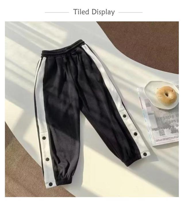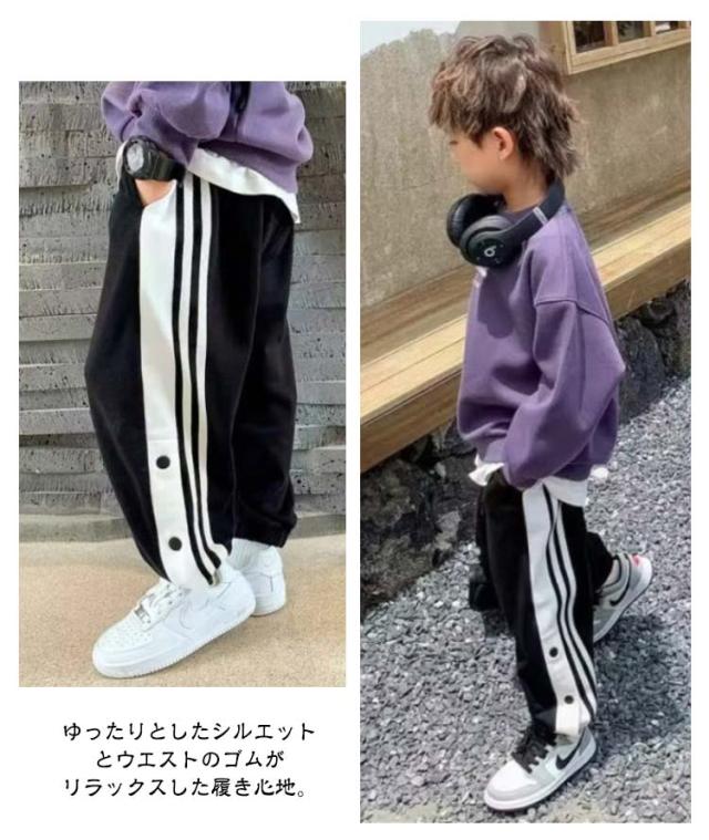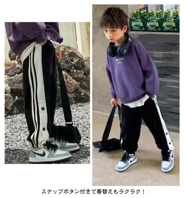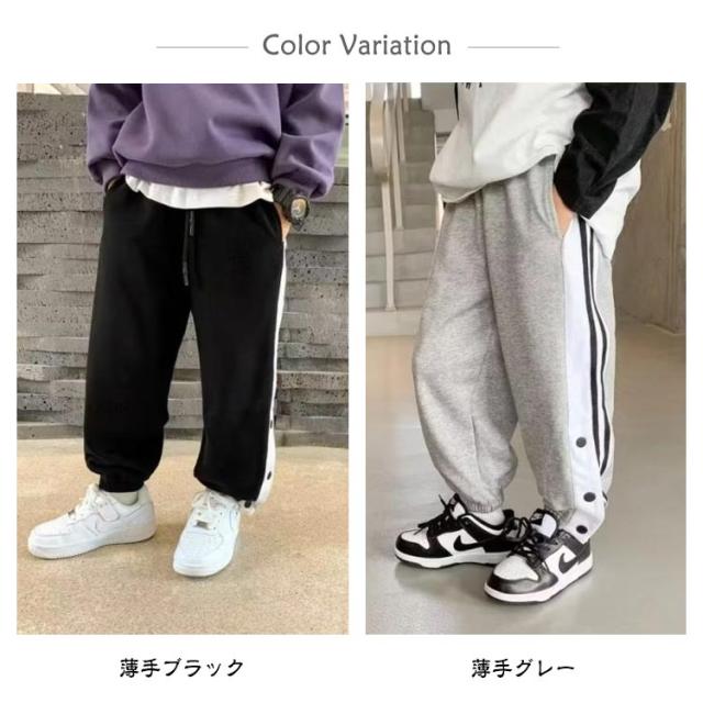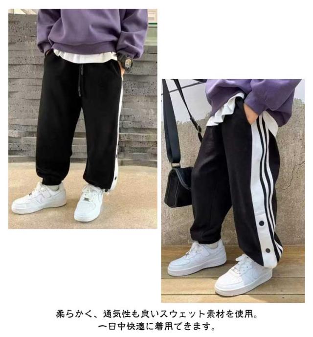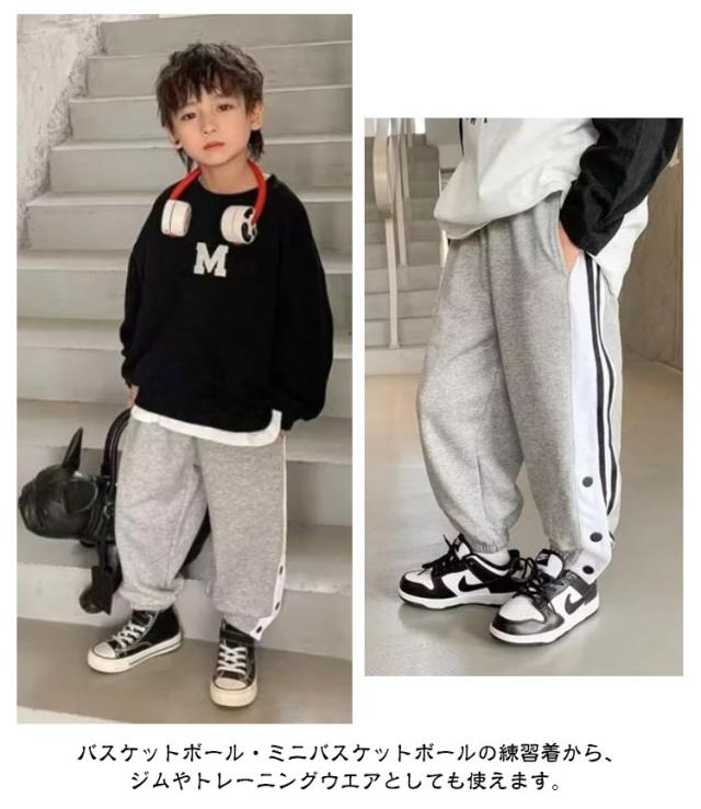 ジュニア スナップボタン バスケットパンツ キッズ 裾ボタン 長ズボン 男の子 サイドボタン バスケットボールパンツ サイドライン バスケットボールパンツ 夏 秋 冬 春 ロングパンツ ジャージパンツ 練習用 バスパン バスケパンツ スポーツウェア トレーニングウエア